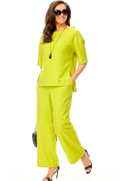 Очень стильный ,элегантный ,модный женский комплект . из льна-вишера , состоит их брюк палаццо и блузона прямого силуэта , со спущенной проймой ,что придает свободу движению и комфорта при носке. Сзади двойная кокетка. Длина блузона сзади от плеча 70,5 см , спереди 65 см. Рукав от горловины 44,5 см. Брюки палаццо прямые с функциональными карманами ,сзади на резинке. Длина брюк -102,5 см Украшение в комплект не входит.