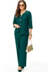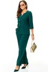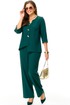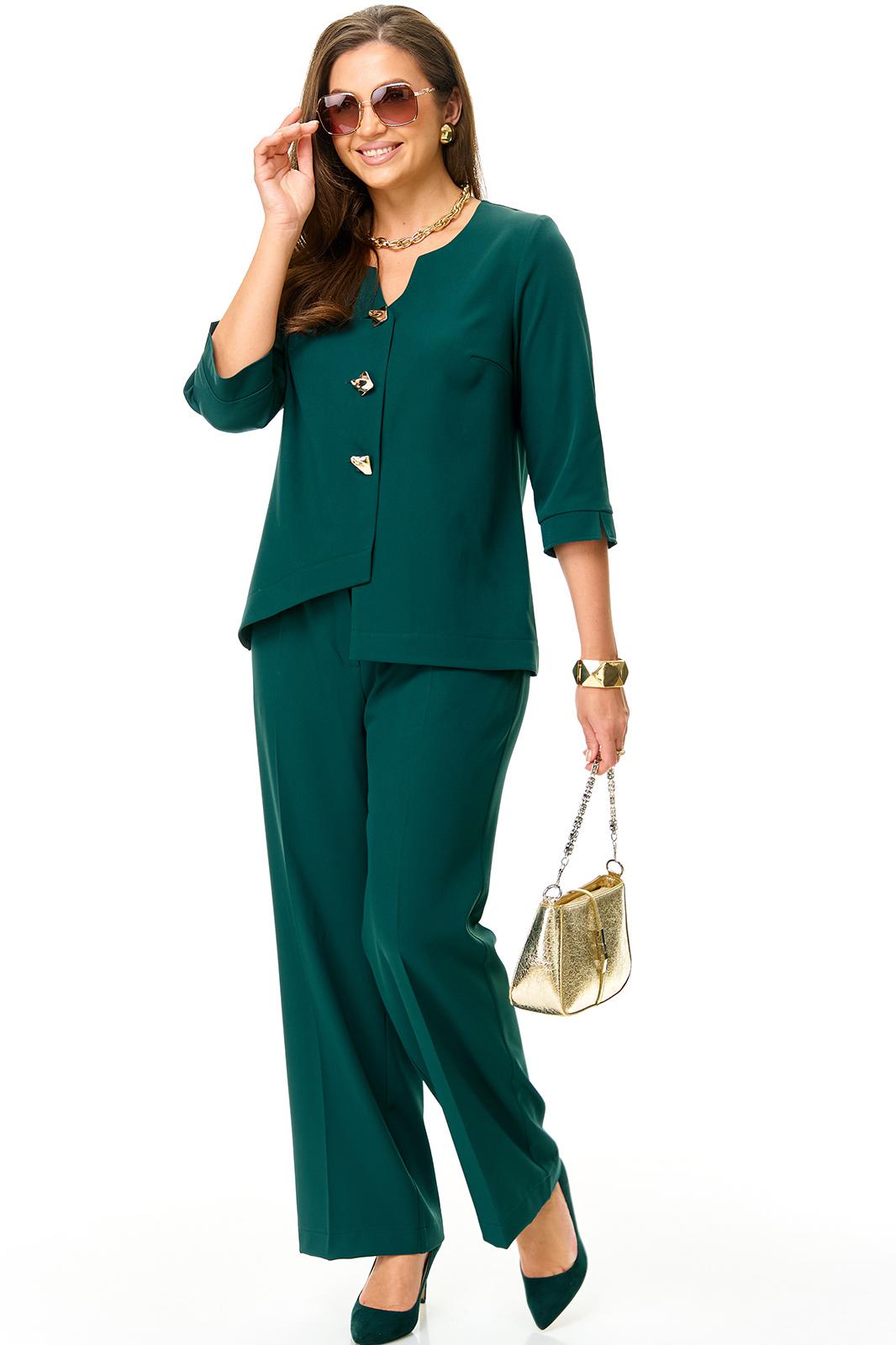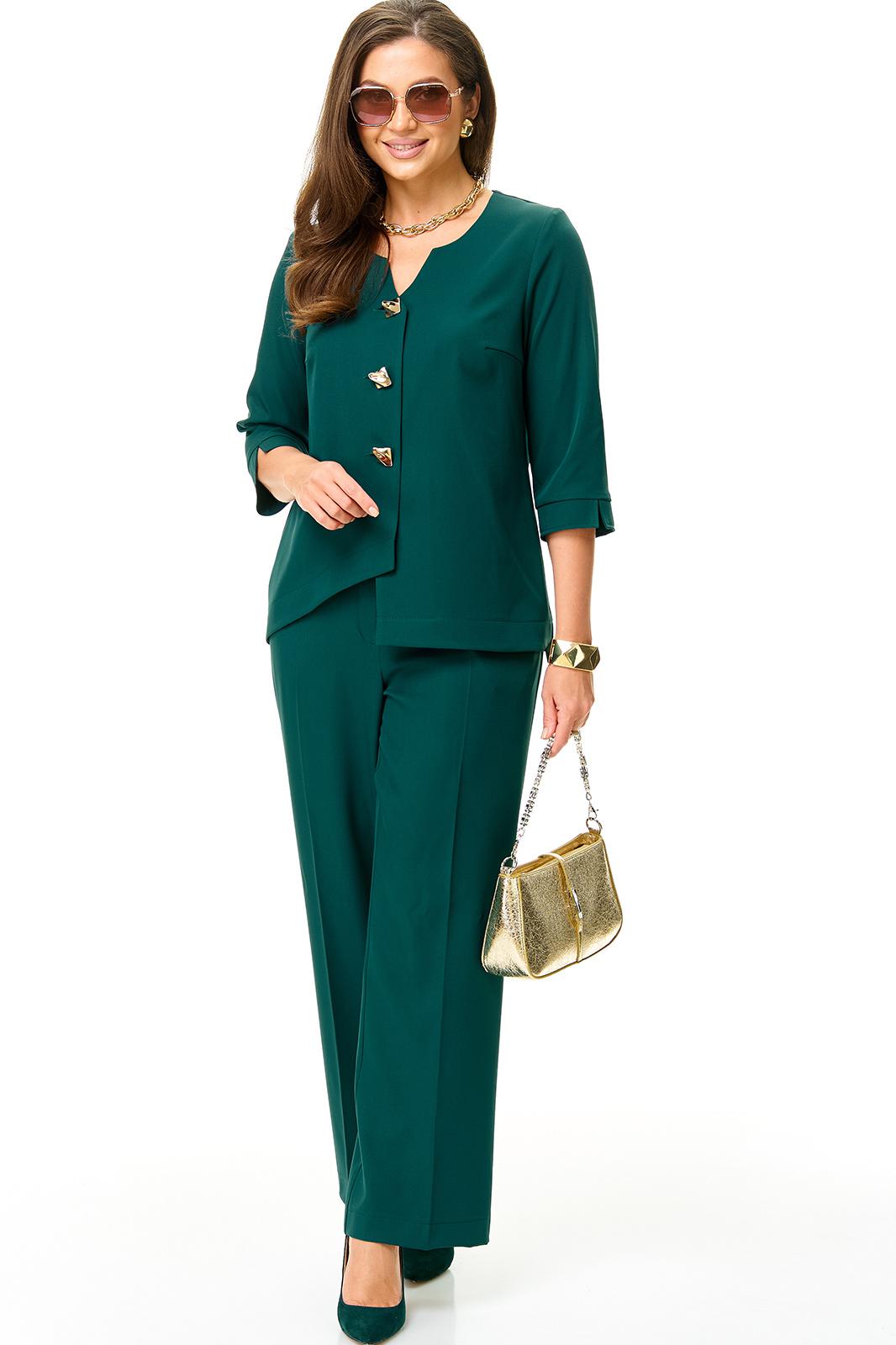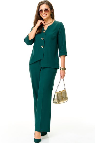 Красивый, элегантный офисный женский комплект. Состоит из жакета и классических брюк , из текстильной ткани хорошего качества. Жакет интересного дизайна , с фигурным вырезом, втачным рукавом , с золотыми красивыми пуговицами, одна пола по переду длиннее второй , что придает элегантность этому жакету. Длина жакета сзади от плеча 67 см , длина рукава 45 см , по низу рукава планка с разрезом посередине, Брюки классические, прямые, с функциональными карманами по бокам, пояс сзади на резинке.