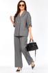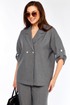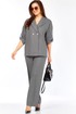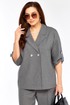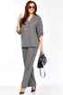 Очень стильный, элегантный, модный женский комплект. Состоит их брюк палаццо и жакета прямого силуэта, со спущенной проймой, что придает свободу движению и комфорта при носке. Интересный дизайн жакета , двубортный с одним рядом крупных пуговиц золотого цвета. Рукав на пате с пуговицей тоже золотого цвета , меньшим диаметром . При желании рукав можно удлинить ,расстегнув пуговицу. Длина жакета по спинке от плеча — 70 см. Брюки палаццо прямые с функциональными карманами, сзади на резинке. Длина брюк -105 см.