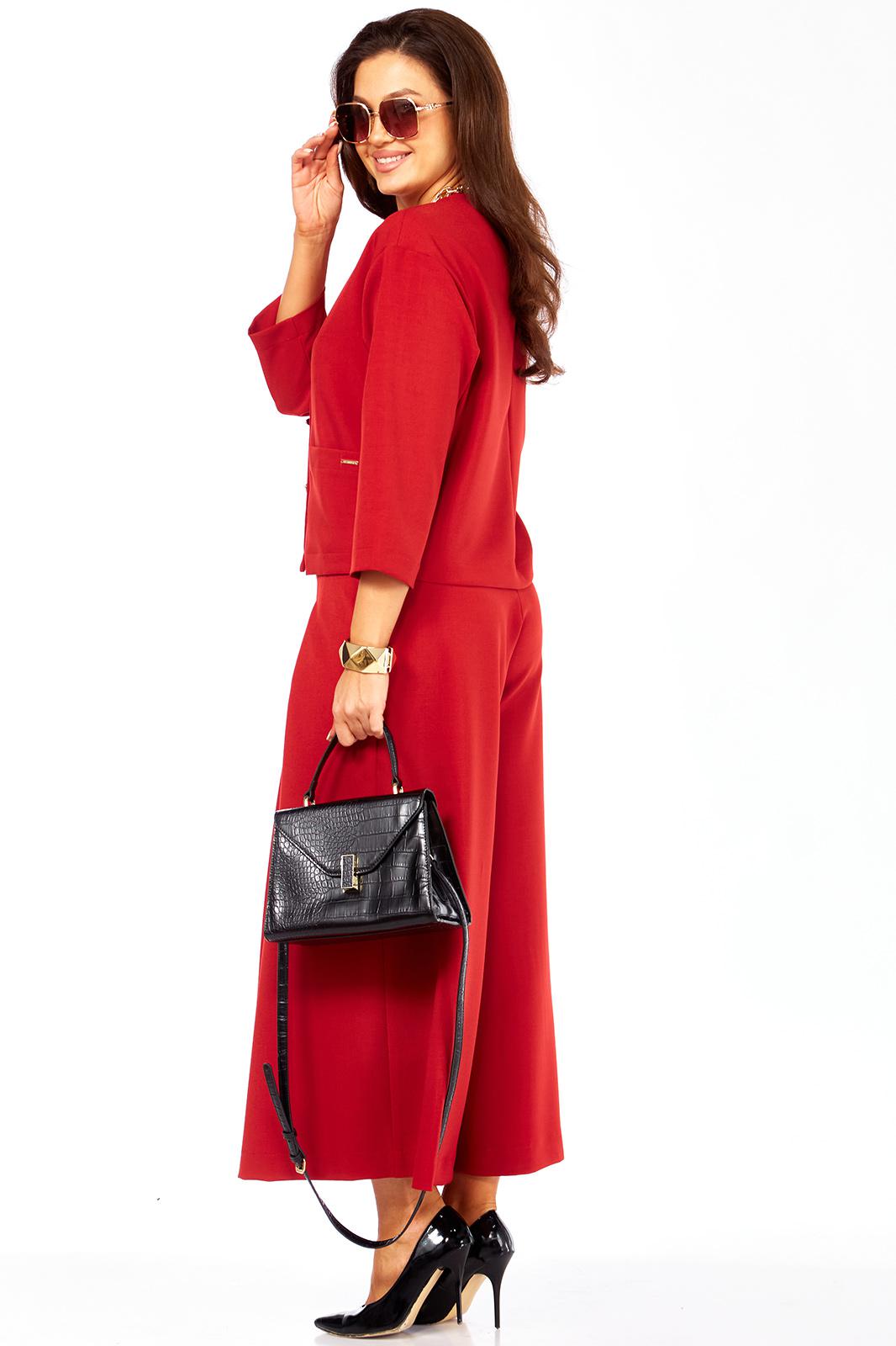 Очень стильный, элегантный, модный женский комплект, состоит из юбки-брюк ( кюлоты ) и жакета, с интересным воротником , с дорогой фурнитурой, накладными карманами с лейбой золотистого цвета. Очень интересный фасон кюлот, с хорошей посадкой, с первого взгляда похожи на юбку. Длина кюлот - 93 см. Пояс со шлевками и на резинке сзади. Длина жакет р. 46-50 (57 см) , в . 52-54 (59 см).