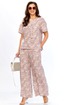 Стильный, легкий, из натуральной ткани вискоза летний комплект, состоит из стильных брюк и блузона. Блузон прямого силуэта, с разрезиками по бокам, спереди интересный функциональный карман. По спинке двойная кокетка. Длина блузона по спинке от плеча 64 см. Брюки стильные, с расширением от бедер, пояс сзади на резинке, по бокам функциональные карманы. Длина брюк -104 см.