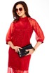 Стильное свободное красивое женское платье из трикотажной ткани и гипюра. Полуприлегающий силуэт, с воротничком стойка и рукавом реглан. Низ платья и рукав с гипюра, рукав на манжете. Длина платья -137 см.