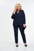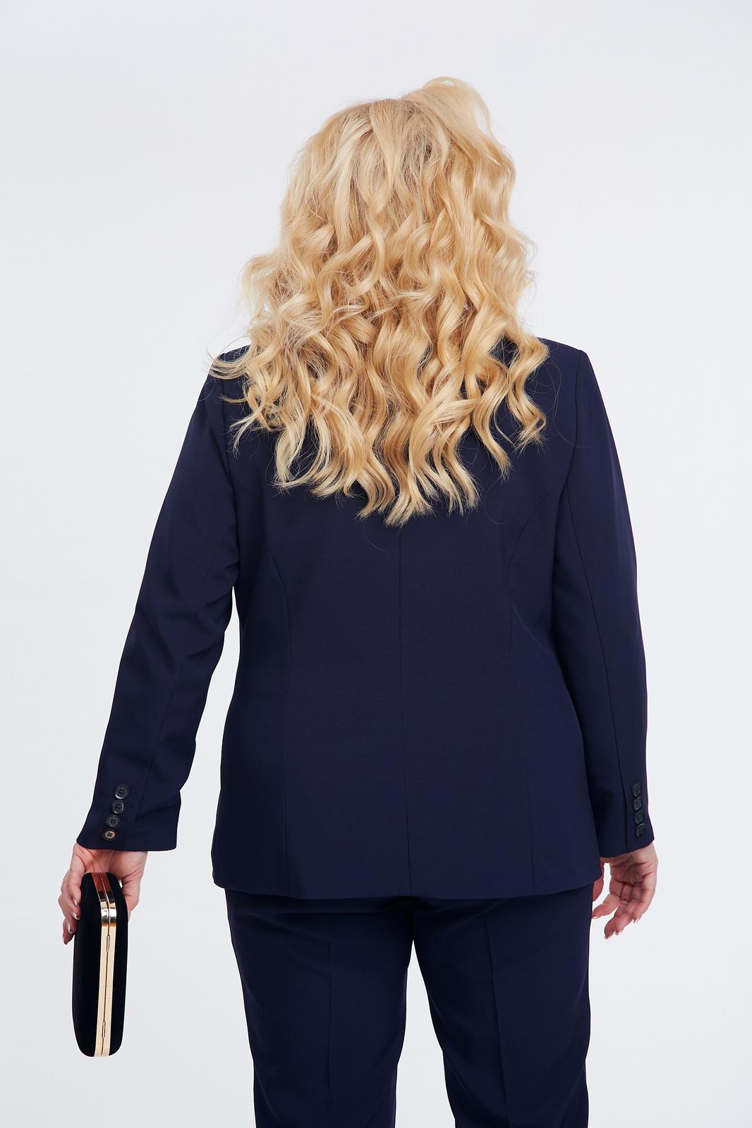 Жакет из костюмной ткани на подкладке, полуприлегающего силуэта, с отложным воротником и лацканами, с центральной бортовой застежкой на петли и пуговицы. Перед с талиевыми вытачками, прорезными карманами с клапаном. Спинка со средним и рельефными швами. Рукав втачной двухшовный. Воротник отложной пиджачного типа.
