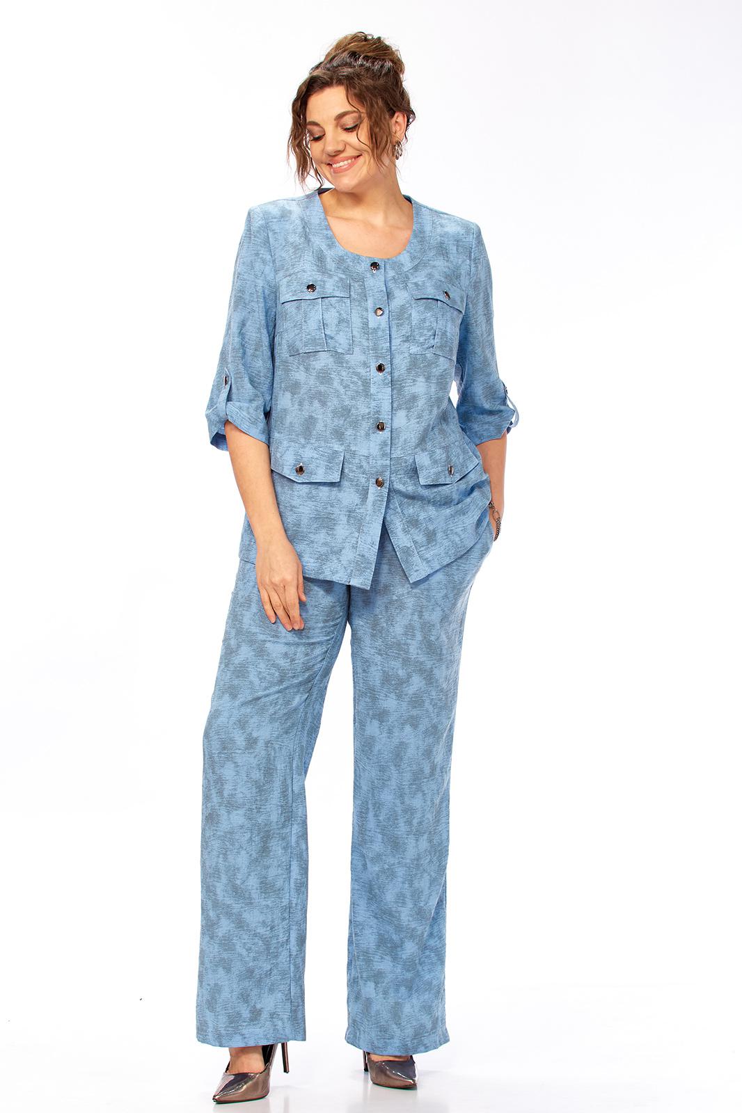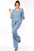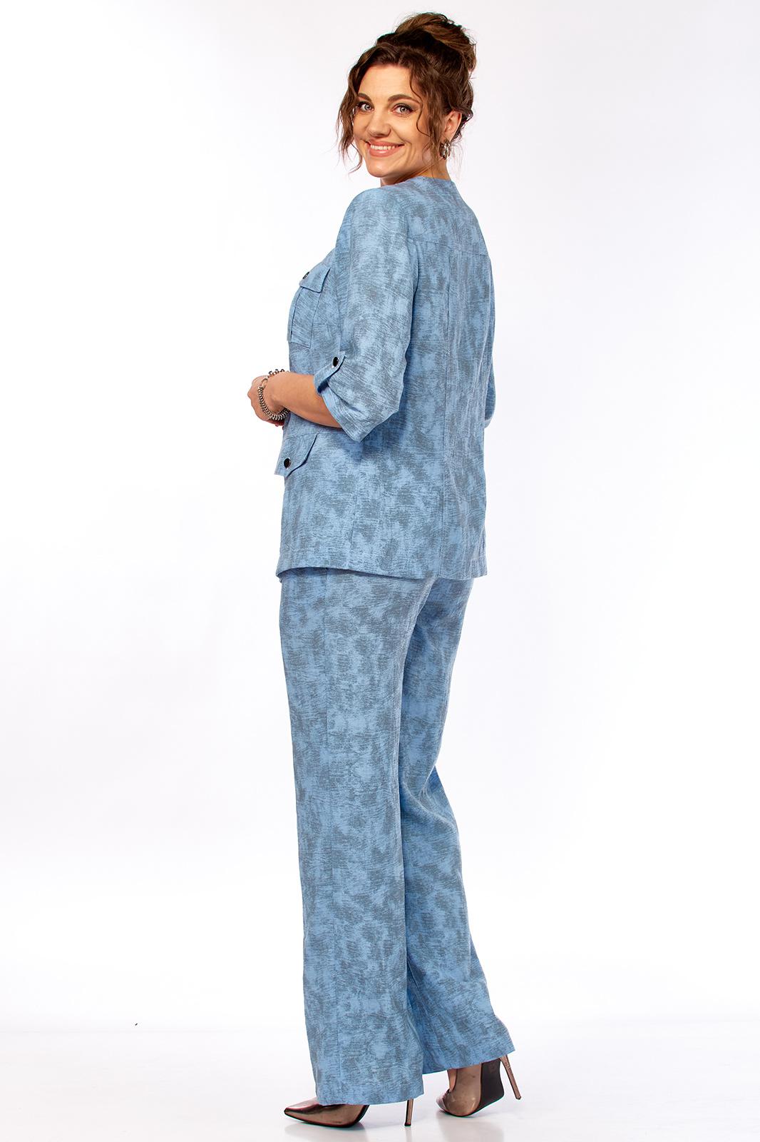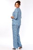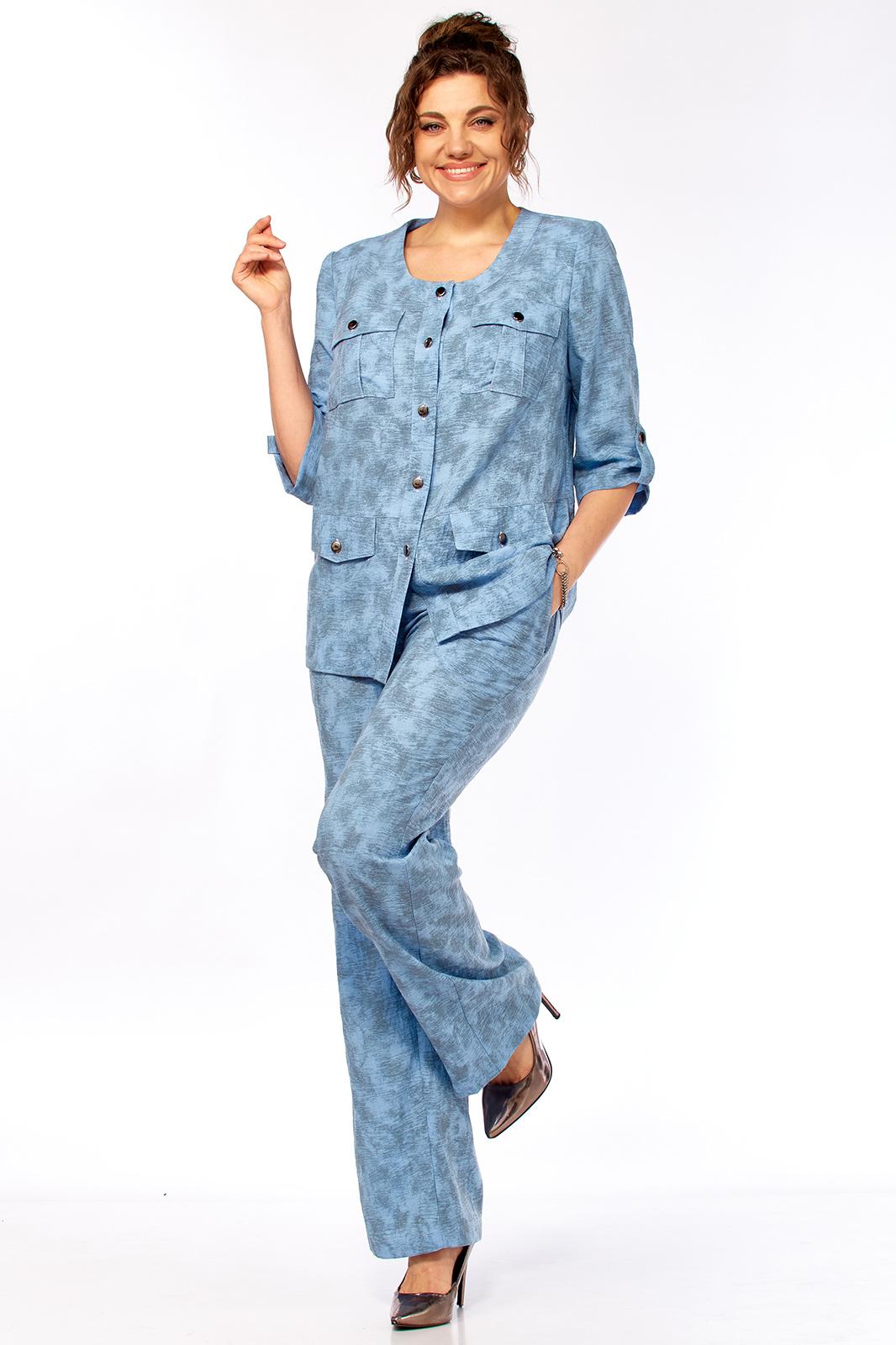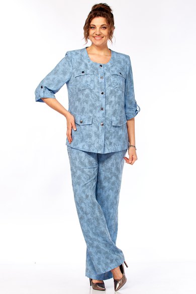 Стильный летний комплект, состоящий из жакета и брюк. Идеальное сочетание удобства и элегантности для Вашего гардероба. Лёгкий хлопок «варёнка» с крэш-эффектом сохраняет комфортный микроклимат в жару, за счёт своей фактуры помятости не требует утюжки. Жакет свободного силуэта с центральной застёжкой-планкой на 5 петель и пуговиц. Перед жакета с кокетками, планками горловины, нагрудными вытачками, накладными карманами, горизонтальными подрезами, отделочными клапанами. Спинка с кокеткой, рельефными швами. Рукав втачной, одношовный, внизу присобран патой. Горловина округлой формы. Брюки прямые, на поясе с резинкой и протянутым шнурком из основной ткани. На передних половинках обработаны функциональные карманы.