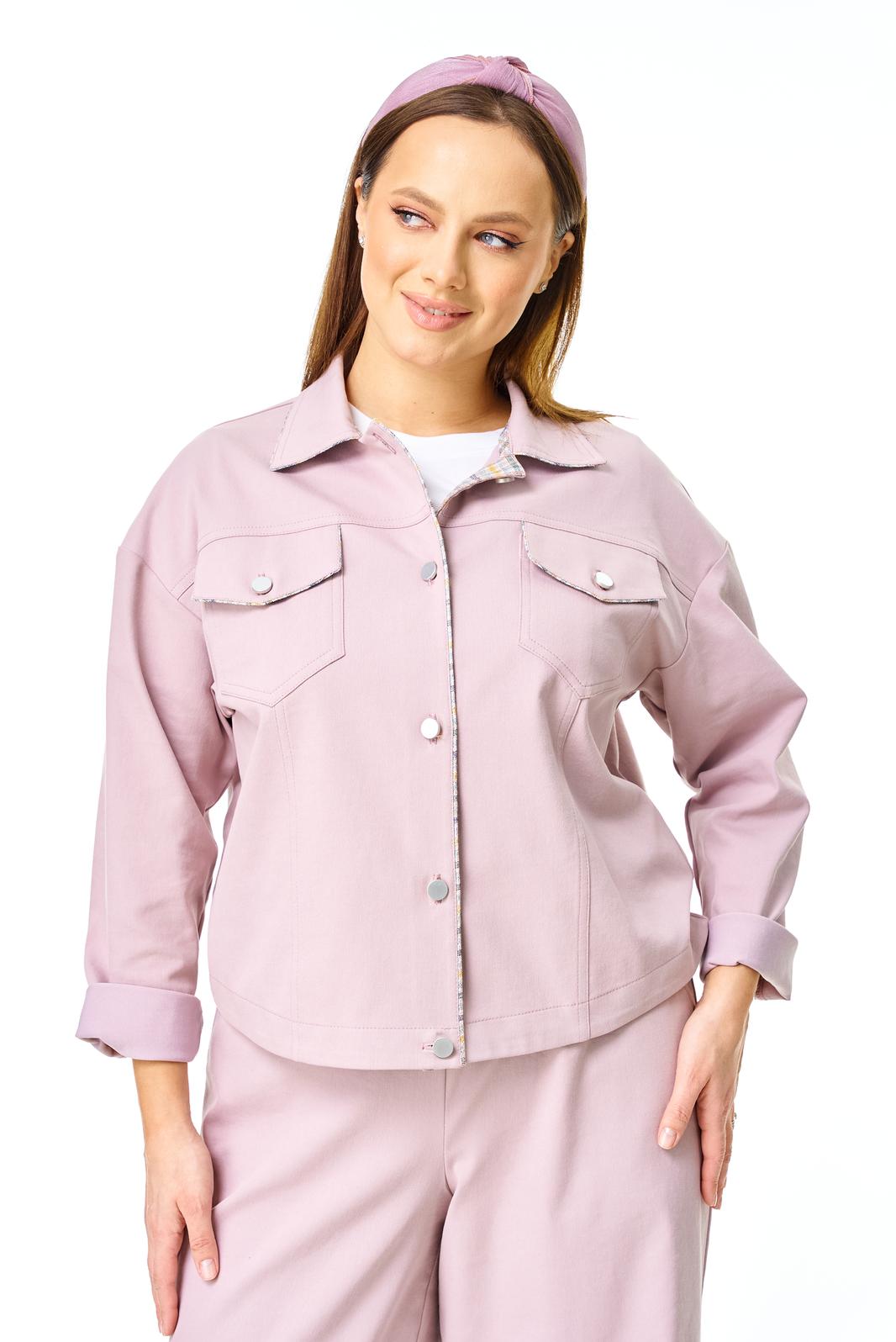 Облегченный укороченный жакет-рубашка из хлопковой комбинированной по цвету ткани свободного силуэта. С воротником, застежка на петли-пуговицы. По переду накладные карманы. По спинке складка от кокетки. Низ свободный, спинка стягивается. Рукав длинный с манжетой.