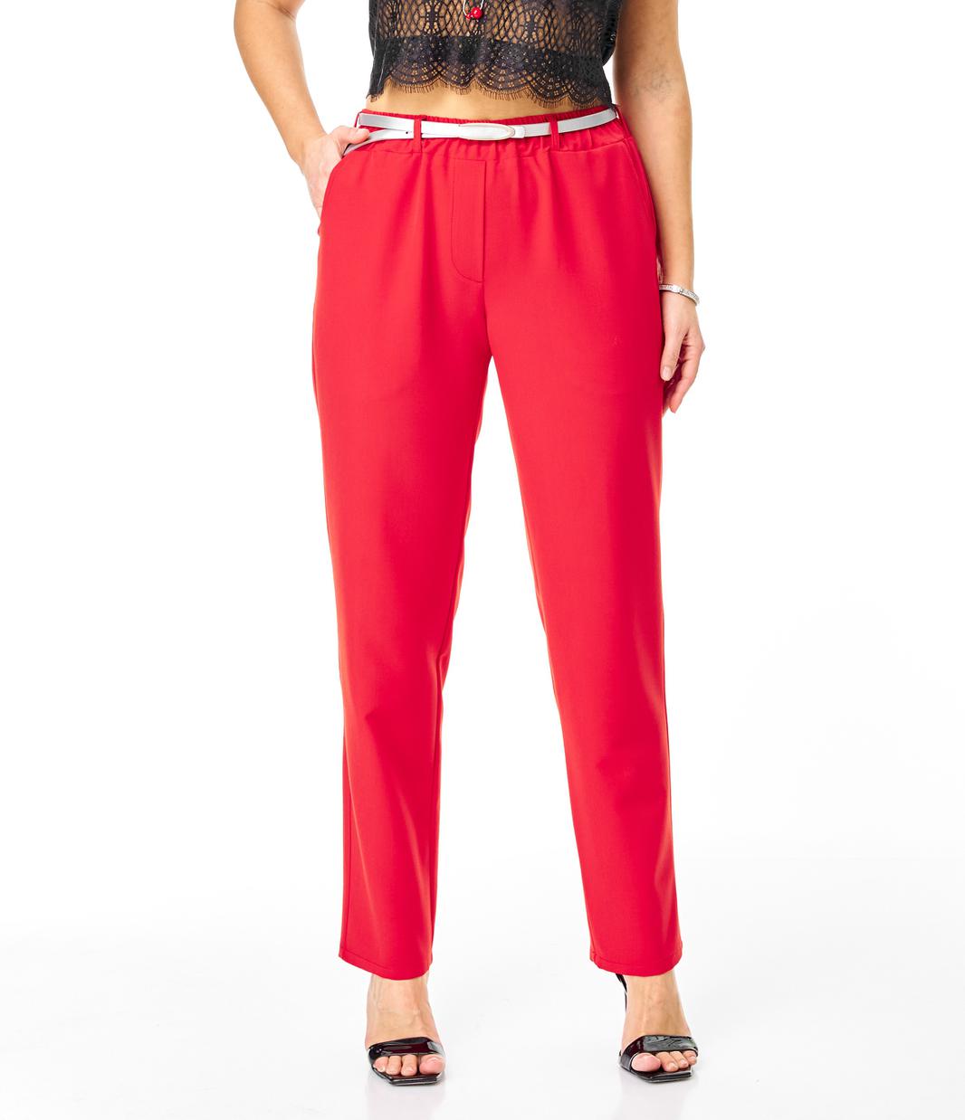 Удобные брюки с высокой посадкой на талии, с глубокими карманами, по поясу резинка. В шлевки протянут ремень из экокожи.