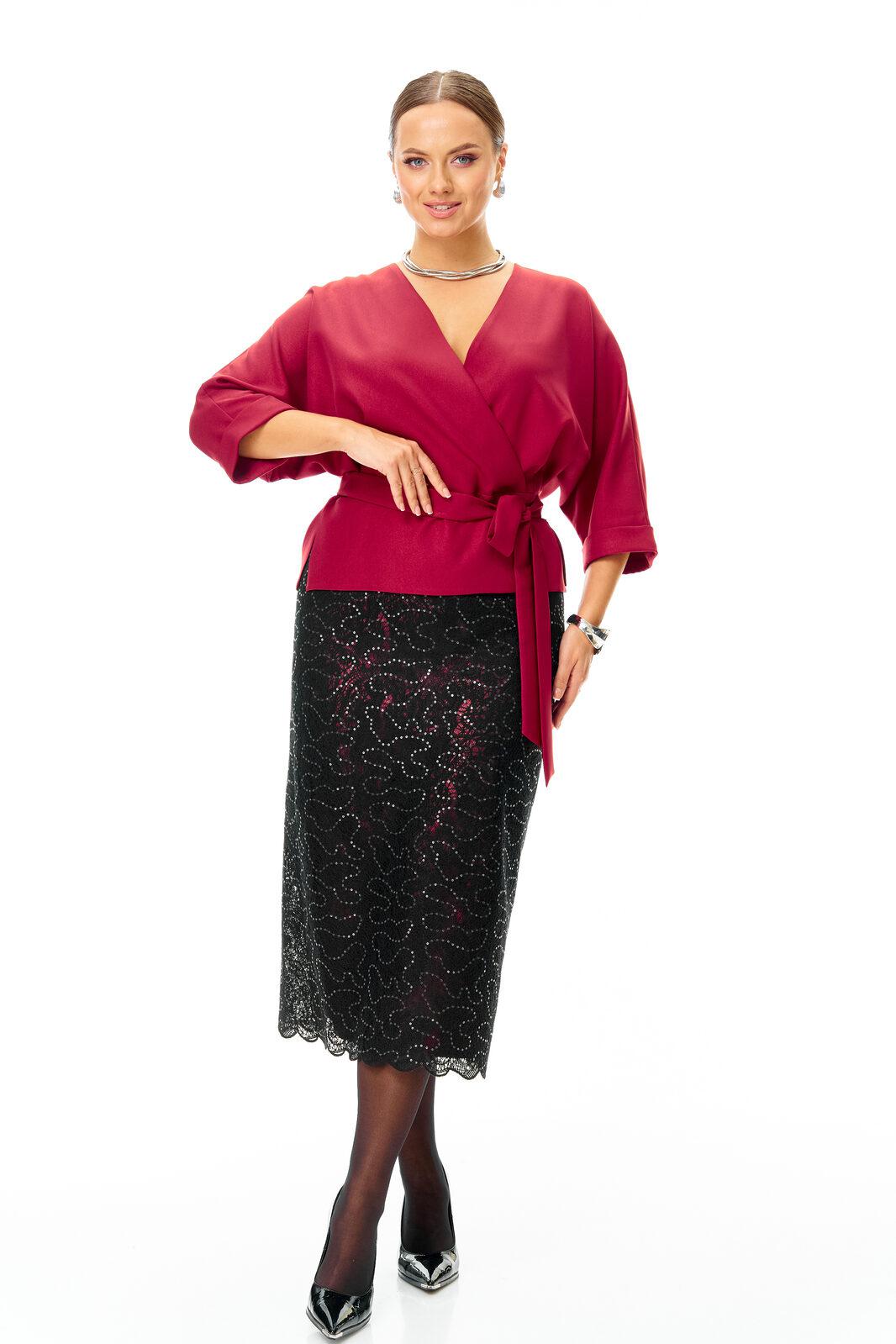 Эффектный нарядный комплект в страстном цветовом сочетании глубокого красного с черным, блеск и кружево.