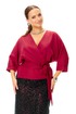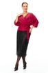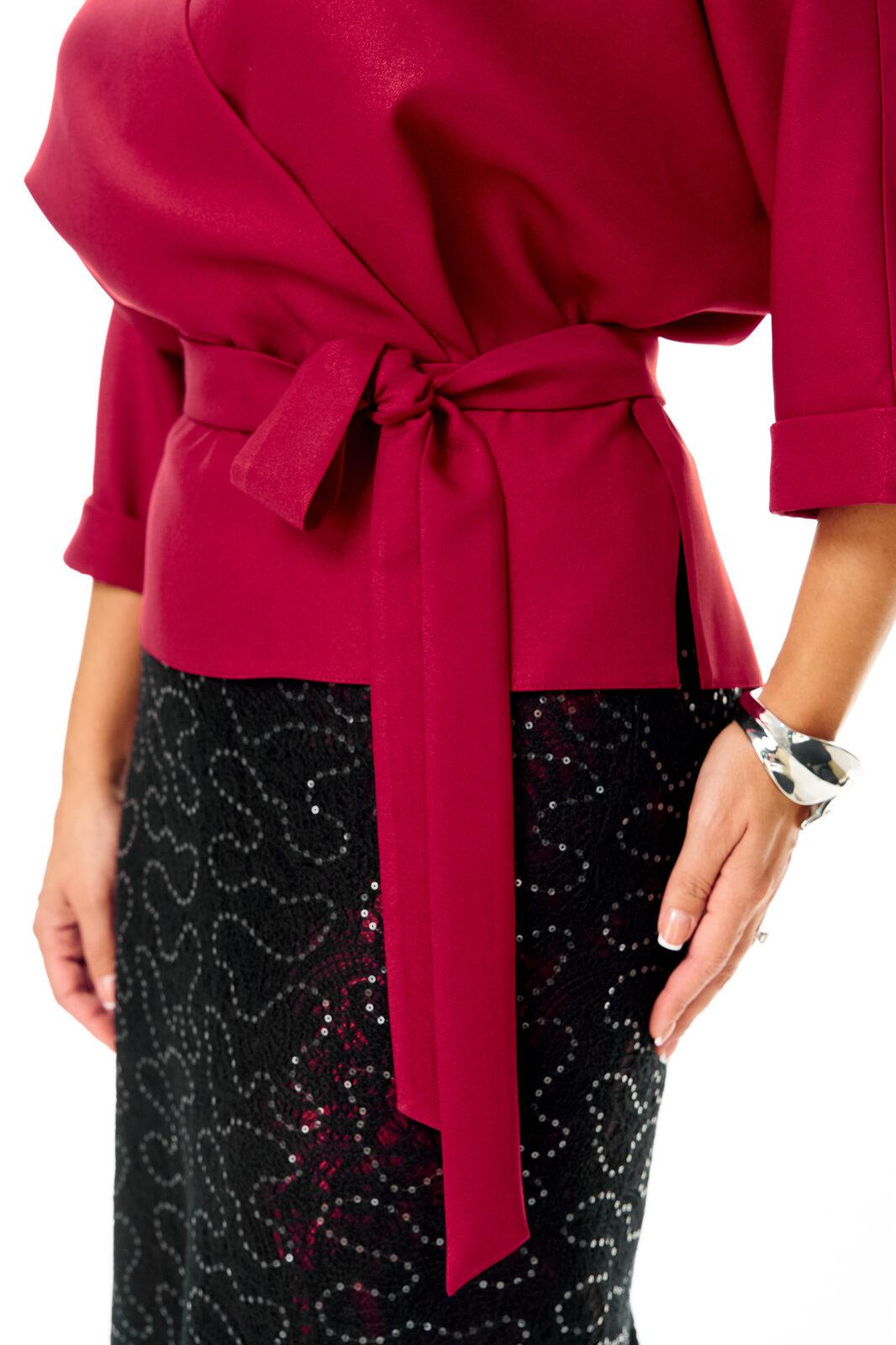 Блуза свободного силуэта. Горловина «на глубокий запах». Рукав цельнокроеный с манжетой. По низу переда планка, через которую протянут пояс. Спинка прямая.