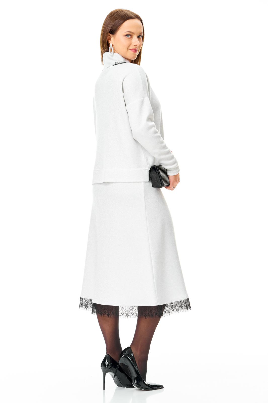 Юбка длиной midi слегка расширенная к низу, пояс на «резинке», без застежки. По низу юбки кружево. Юбка без подкладки.