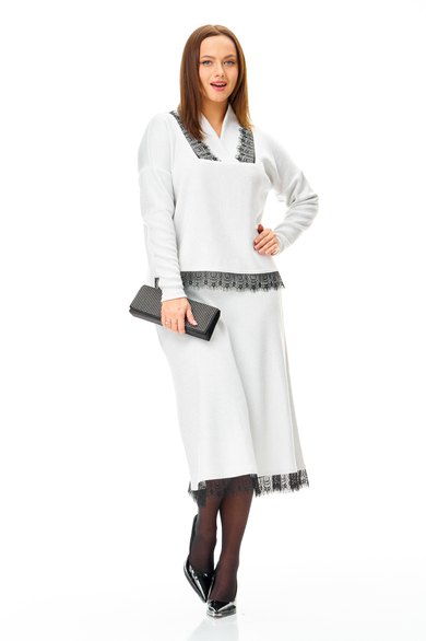 Нарядный комплект из мягкого трикотажного полотна в сочетании с контрастным кружевом..