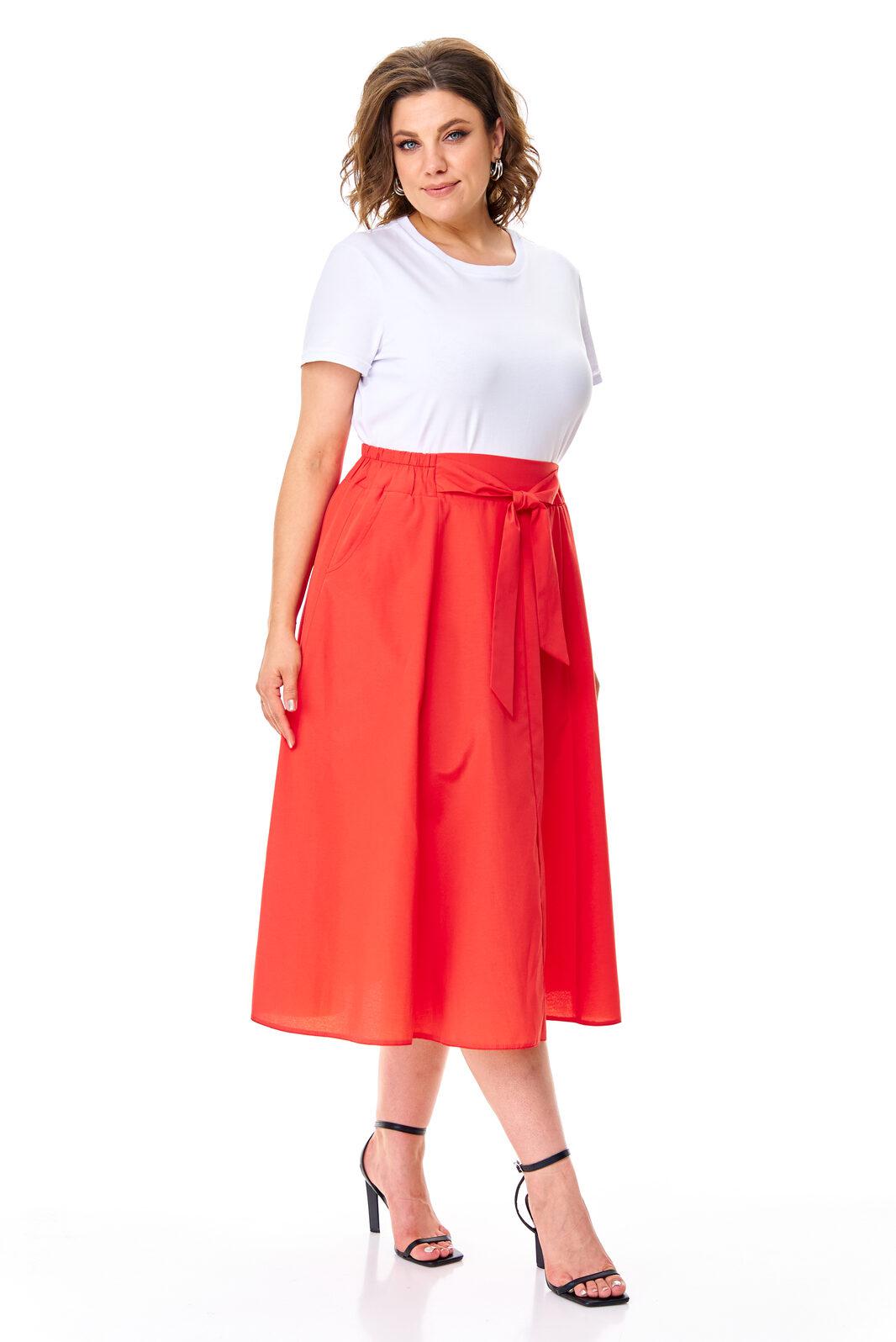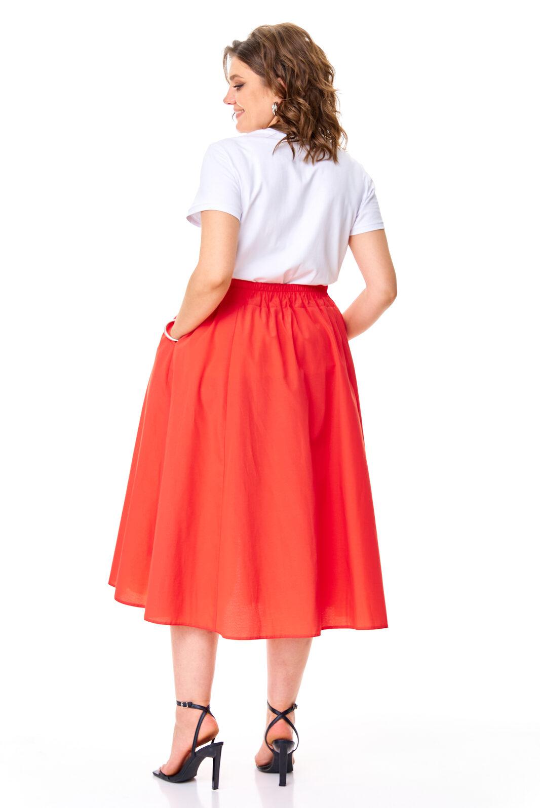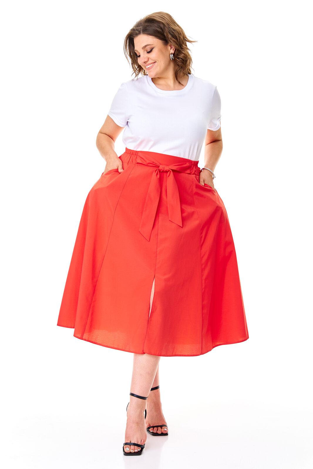 Юбка расклешенная «семиклинка» с глубокими карманами скрывает бедра, по центру разрез. Пояс широкий, собран на эластичную тесьму «резинка». Центральная часть пояса с лентами, которые можно завязать. Юбка без подкладки.
