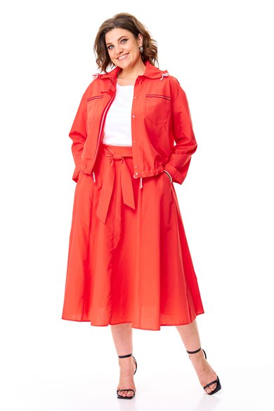 - Тип ткани: жакет и юбка: вискоза 35%, хлопок 35%, полиэстер 30%, футболка: хлопок 95%, эластан 5%.