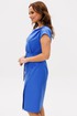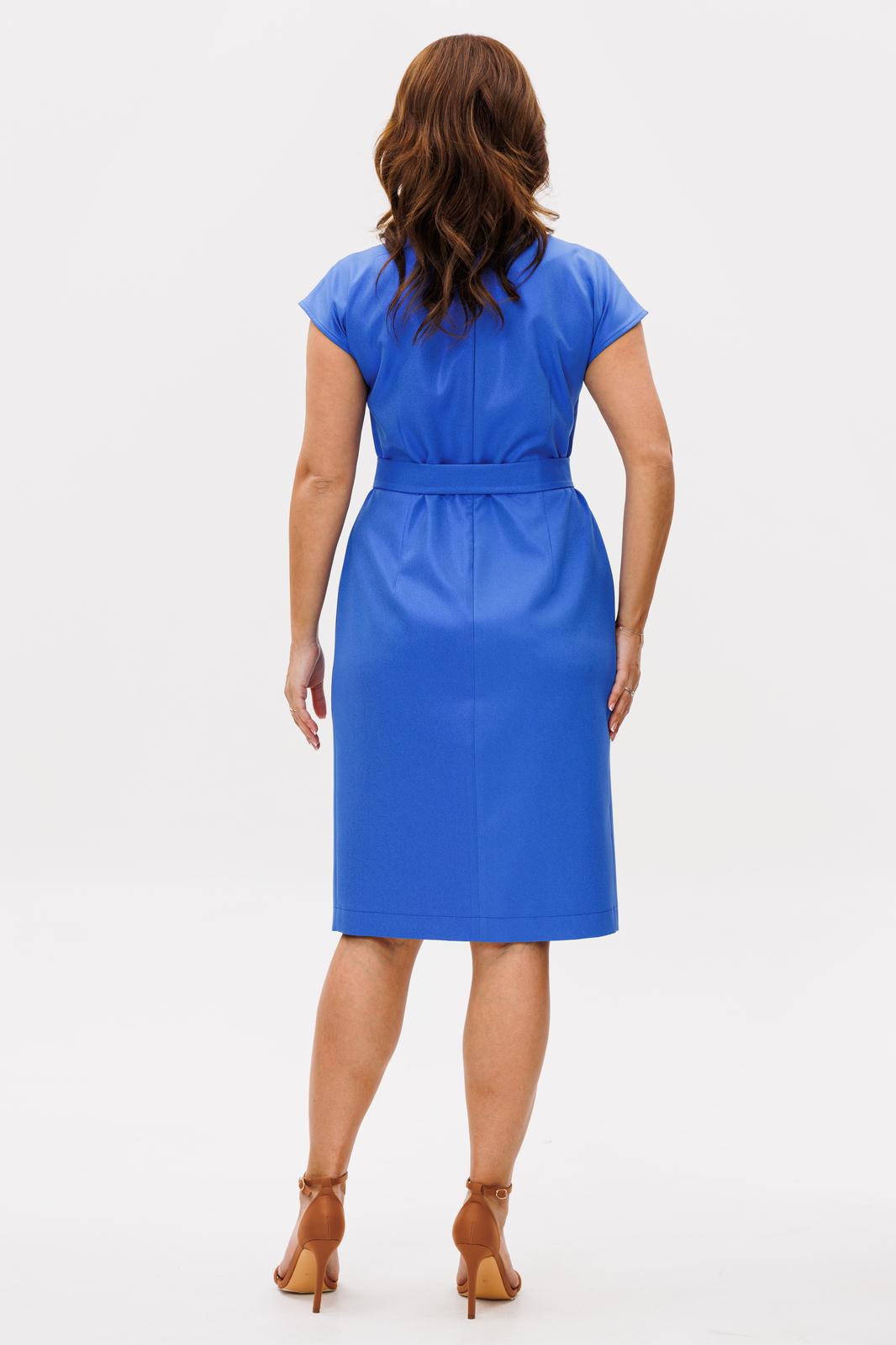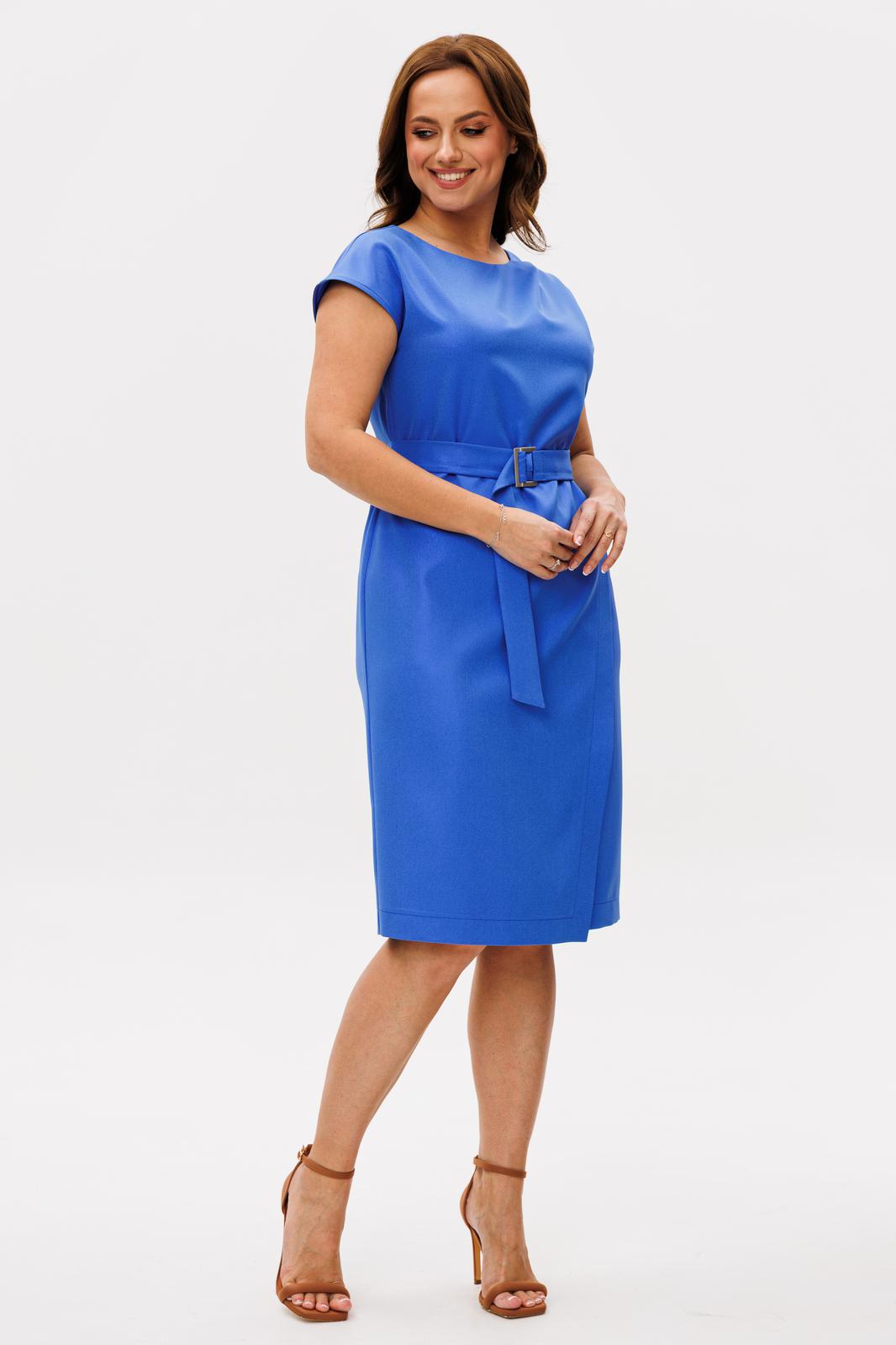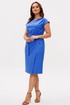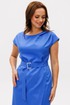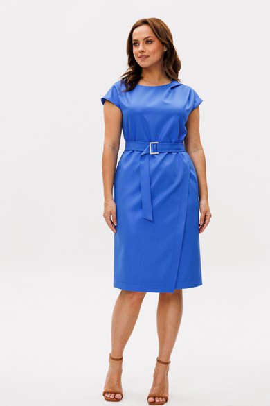Полуприлегающего силуэта, перед с глубоким запахом. По левому плечу складки. Застежка молния по спинке. Горловина овальная. Плечо спущено. Пояс с пряжкой.