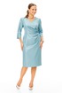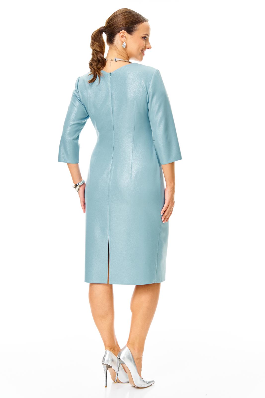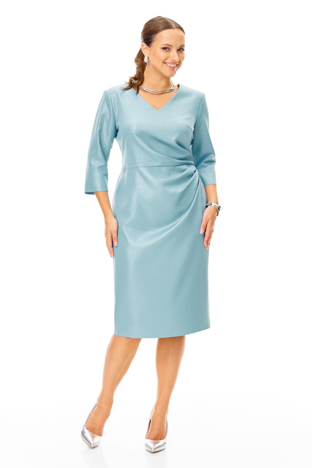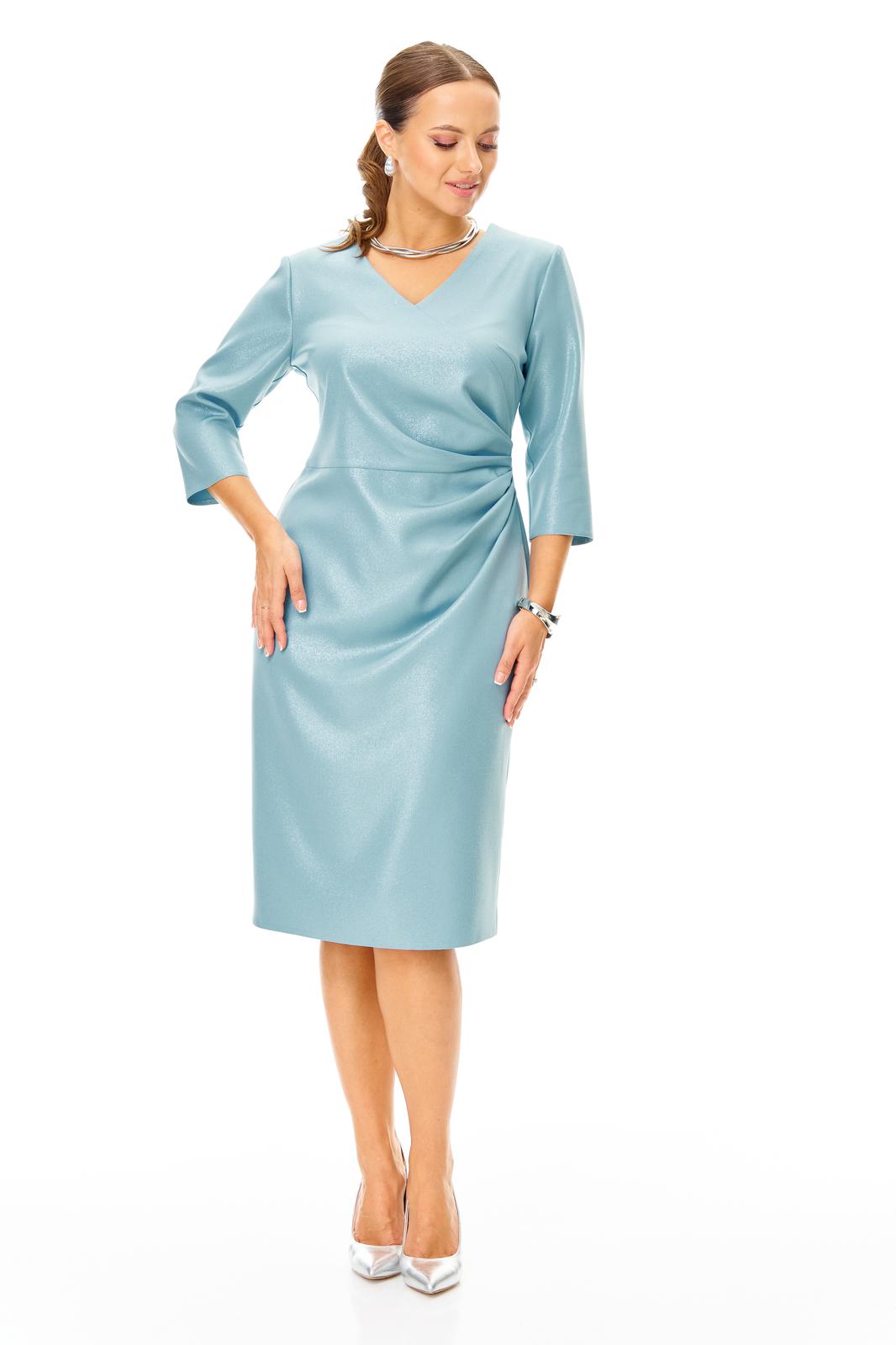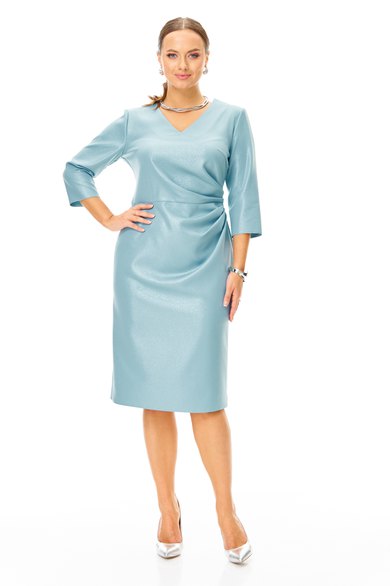 Элегантное нарядное женственное платье из ткани с блестящим напылением. Платье полуприлегающего силуэта. Горловина V-образная неглубокая. По левой стороне драпировка складками. Рукав втачной длина 3/4. По спинке застежка «молния». Платье без подкладки.