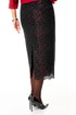 Юбка из плотного черного кружева на красной саржевой подкладке зауженная к низу с разрезом по спинке. Застежка «потайная молния» по среднему шву спинки.