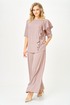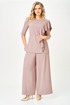 Брюки-палаццо, расширенные к низу, с центральной застежкой гульфик на молнию и пуговицу. В боковых швах карманы. Пояс притачной с резинкой по спинке.