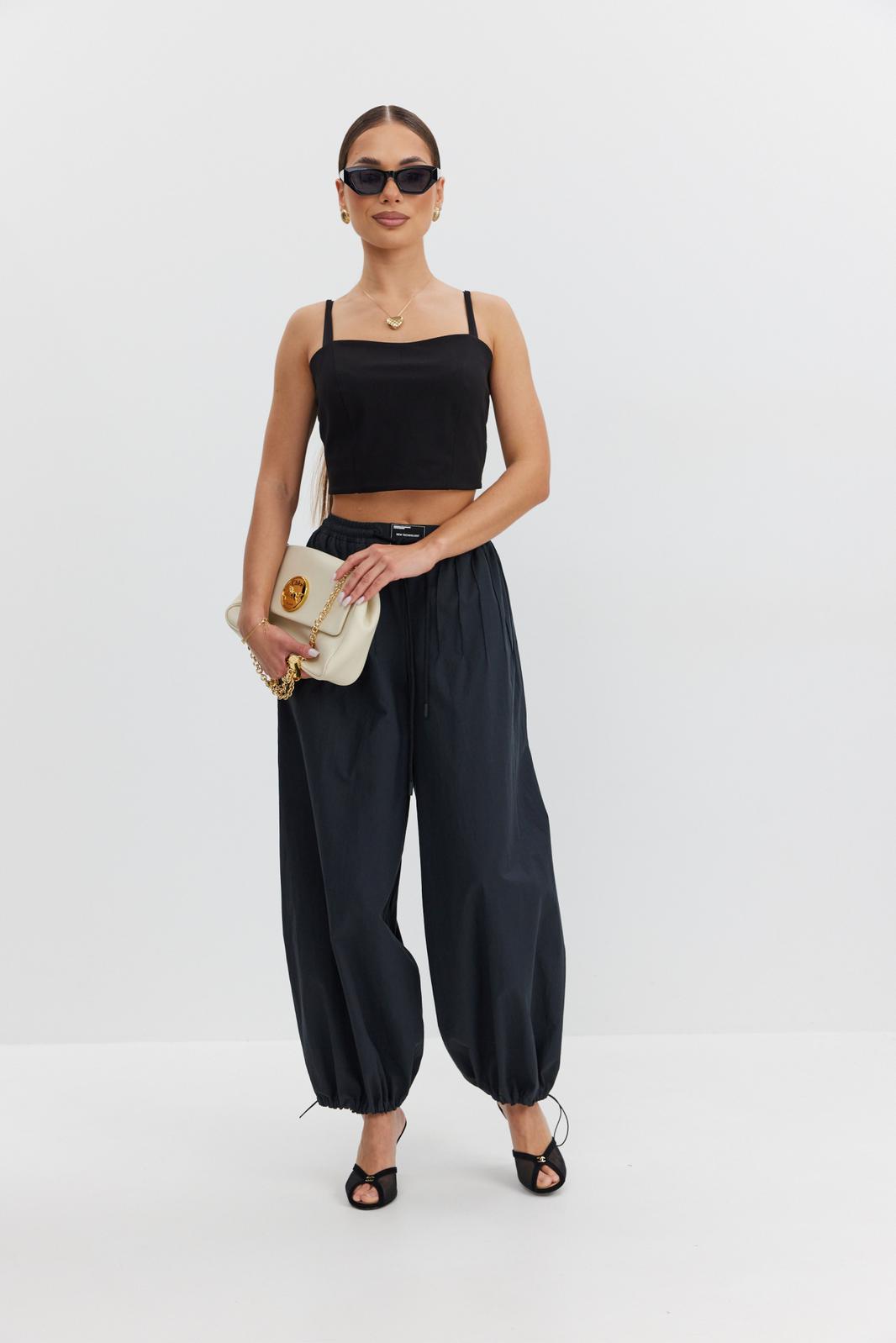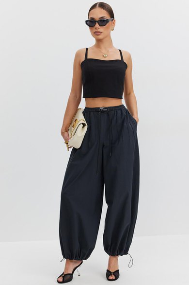 Блузка-топ прилегающего силуэта на регулируемых бретелях из эластичного трикотажного полотна.
