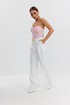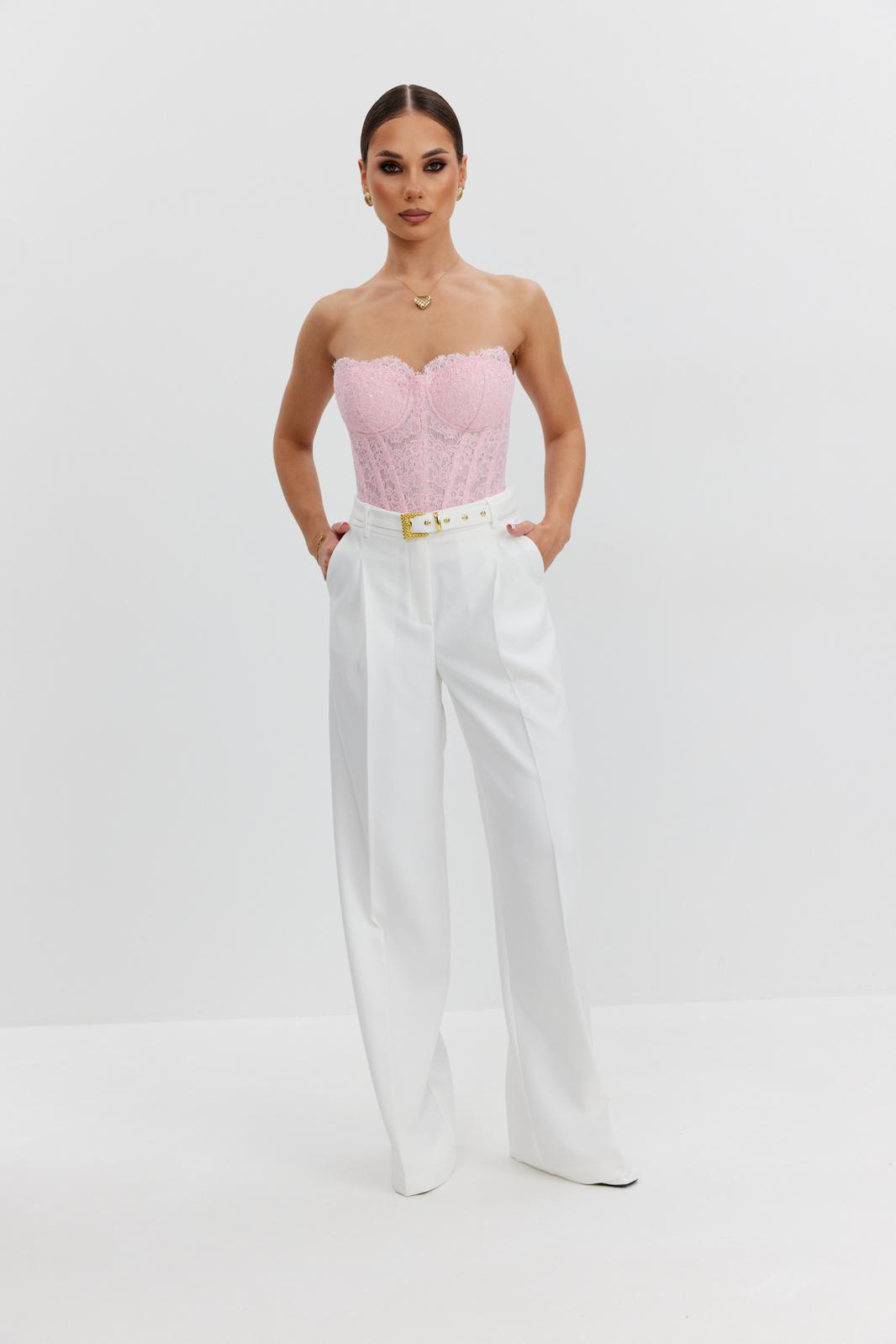 Корсет женский для торжественных случаев. Корсет декольтирован, длиной ниже талии, прилегающего силуэта. Застежка на люверсы и шнуровку в среднем шве спинки. Перед и спинка корсета с рельефами, по швам рельефов настрочены полоски отделочные и усилены вставками каркасными. Перед с отрезными чашками для бюстье. Верхний и нижний край корсета окантованы.