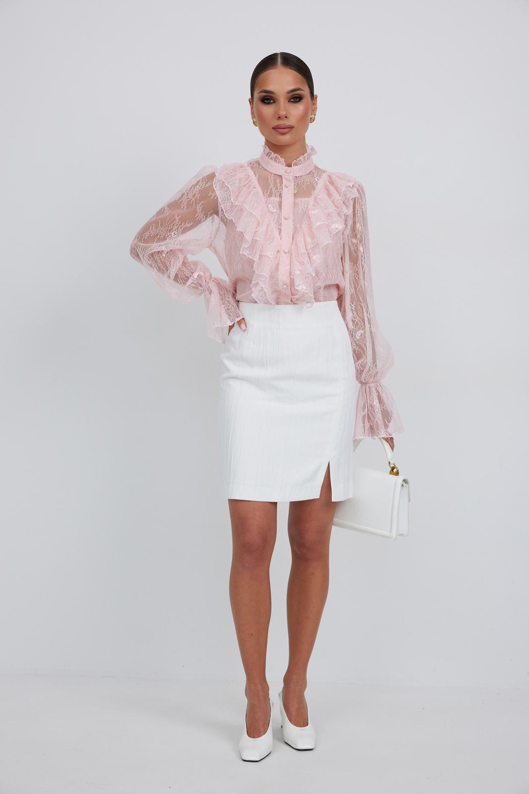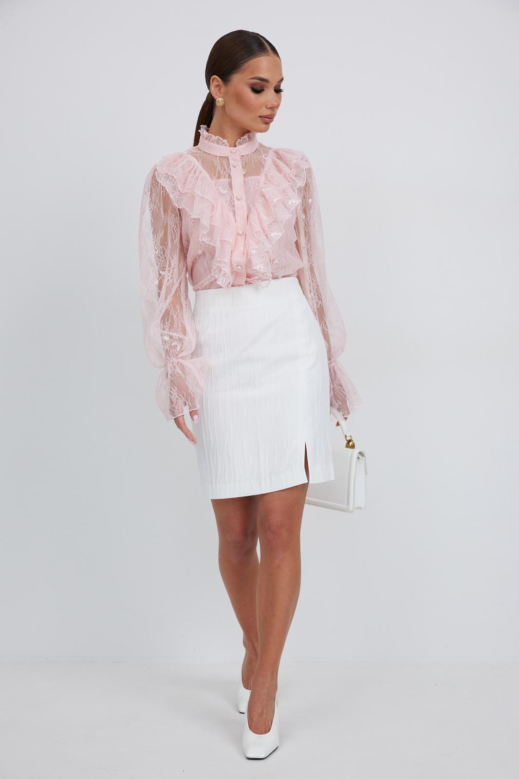 Юбка прямого силуэта из ткани с эффектом крэш. Длина до колена. По переду разрез. Сзади застёжка на потайную молнию. Юбка на подкладке.