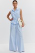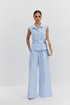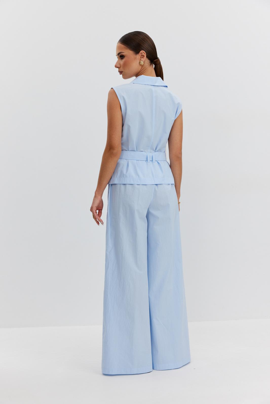 Брюки женские свободного силуэта из хлопковой ткани с «креш»-эффектом, высокая посадка, брюки на резинке, пояс притачной со шнуром, боковые карманы в швах.