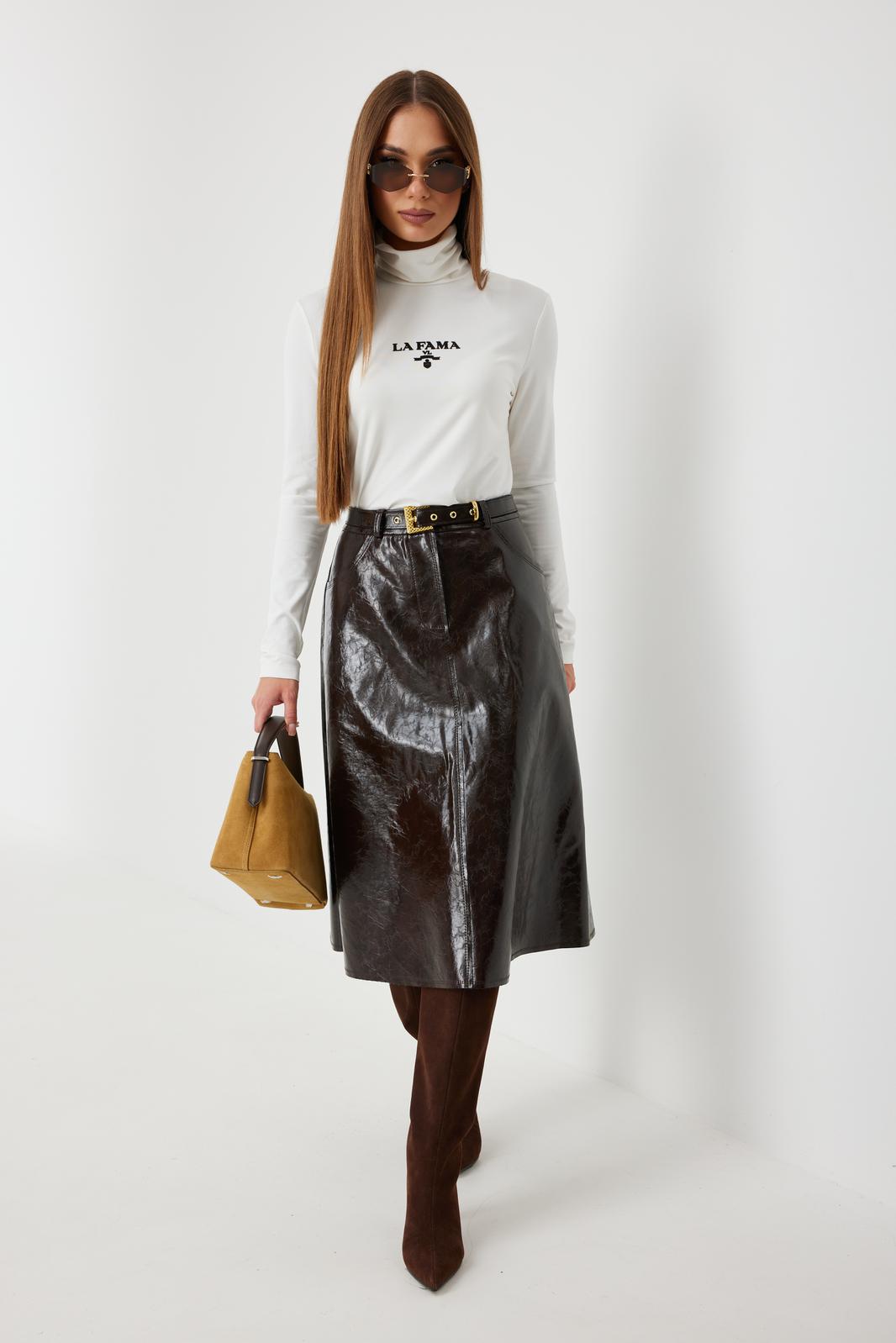 Джемпер женский прилегающего силуэта из мягкого трикотажа, с интересной печатью на переде. Воротник стойка, рукав втачной одношовный узкий.