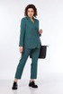 Костюм женский состоящий из жакета и брюк. Жакет полуприлегающего силуэта с центральной бортовой застёжкой на 2 петли-пуговицы до линии перегиба лацкана. Перед с отрезным бочком, талиевой вытачкой и карманом в рамку. Правая часть переда с фигурным лацканом, закреплённым пуговицей. Спинка со средним швом. По переду обработана небольшая цельнокроенная стойка, а по спинке отрезная со средним швом. Рукава втачные двухшовные длинные. Брюки слегка зауженные к низу с притачным поясом сзади на резинке. Застёжка на тесьму-молнию и одну петлю-пуговицу по поясу в среднем шве передних половинок. На изделии обработаны наклонные к боковому шву карманы и заутюжены канты. Длина жакета по спинке - 67,5 см. Длина рукава - 61 см. Длина брюк по боковому шву - 95 см.