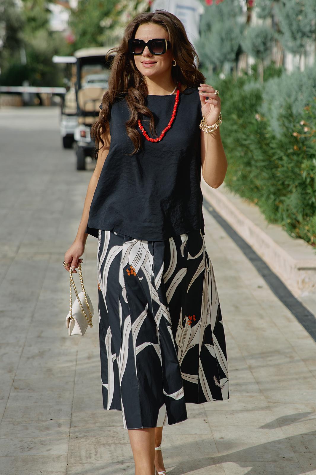 Базовая чёрная блуза без рукава — это не просто предмет одежды. Это пространство. Пустота, которую можно заполнить чем угодно: яркой юбкой, строгими брюками, джинсами с потертостями. Это холст, на котором можно рисовать любой образ. Сочетается со всем — от белых льняных брюк до кожаной юбки. Подходит для любого случая — офис, свидание, прогулка, вечеринка. Не устаревает — она вне времени, как чёрный цвет. Подчёркивает, а не перебивает — акценты остаются для аксессуаров и нижней части образа.