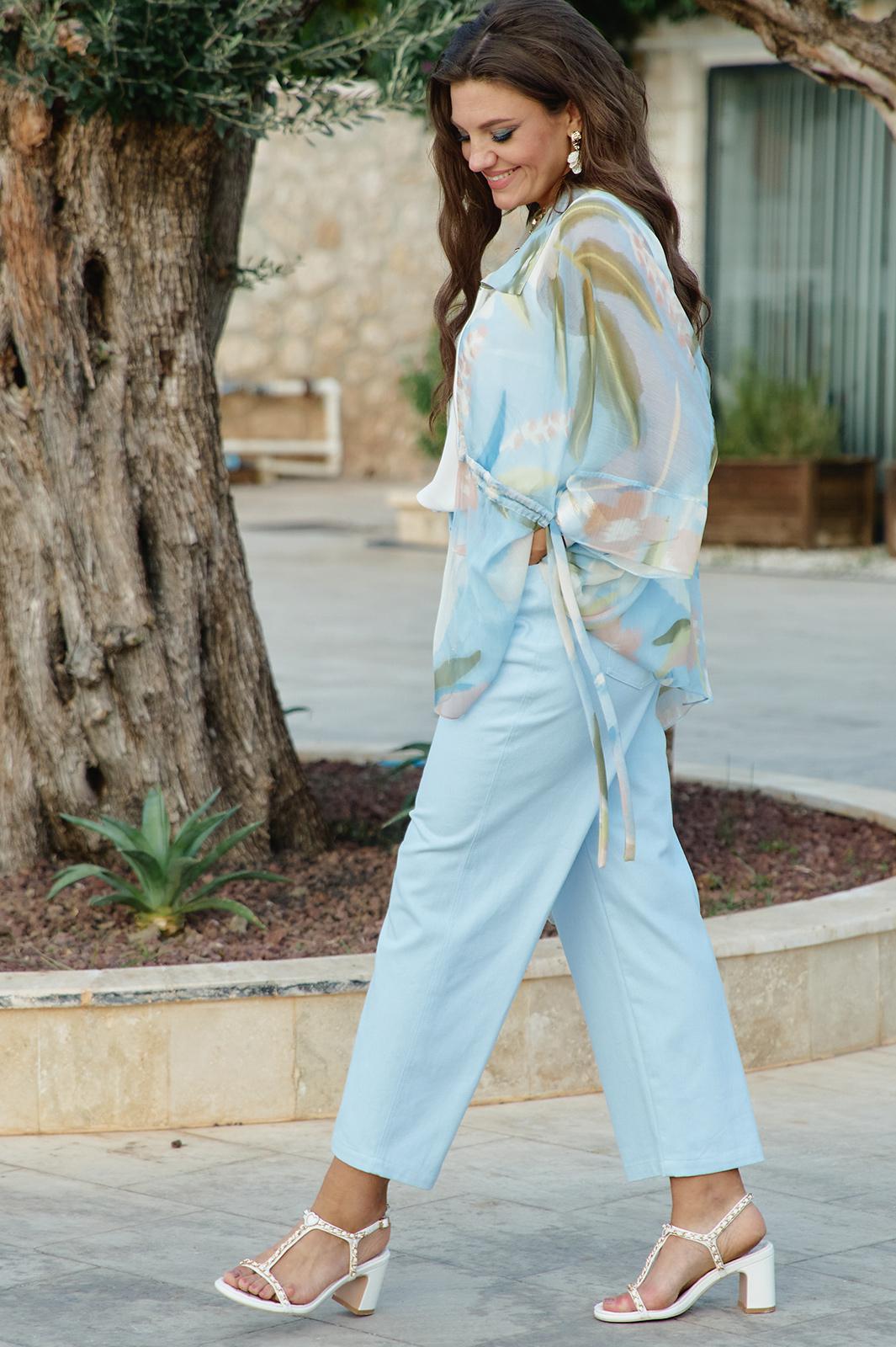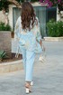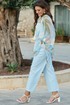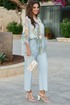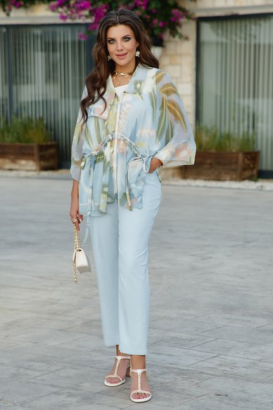 Брюки - джинсы классического силуэта являются отличной базой в гардеробе каждой модницы. Светлый деним придаёт образу лёгкости и уверенности. Классический крой делает силуэт сбалансированным и вневременным. Брюки прямого силуэта, по переду застежка на тесьму молнию в гульфике и пуговицу в поясе. По переду брюк наклонные карманы. Пояс притачной со шлёвками, вставкой эластичной тесьмы резинки в «бочках» пояса и вставкой фигурной кокетки по задним деталям брюк. По задним половинкам брюк накладные карманы. Длина брюк по боковому шву от шва притачивания пояса 98 см.