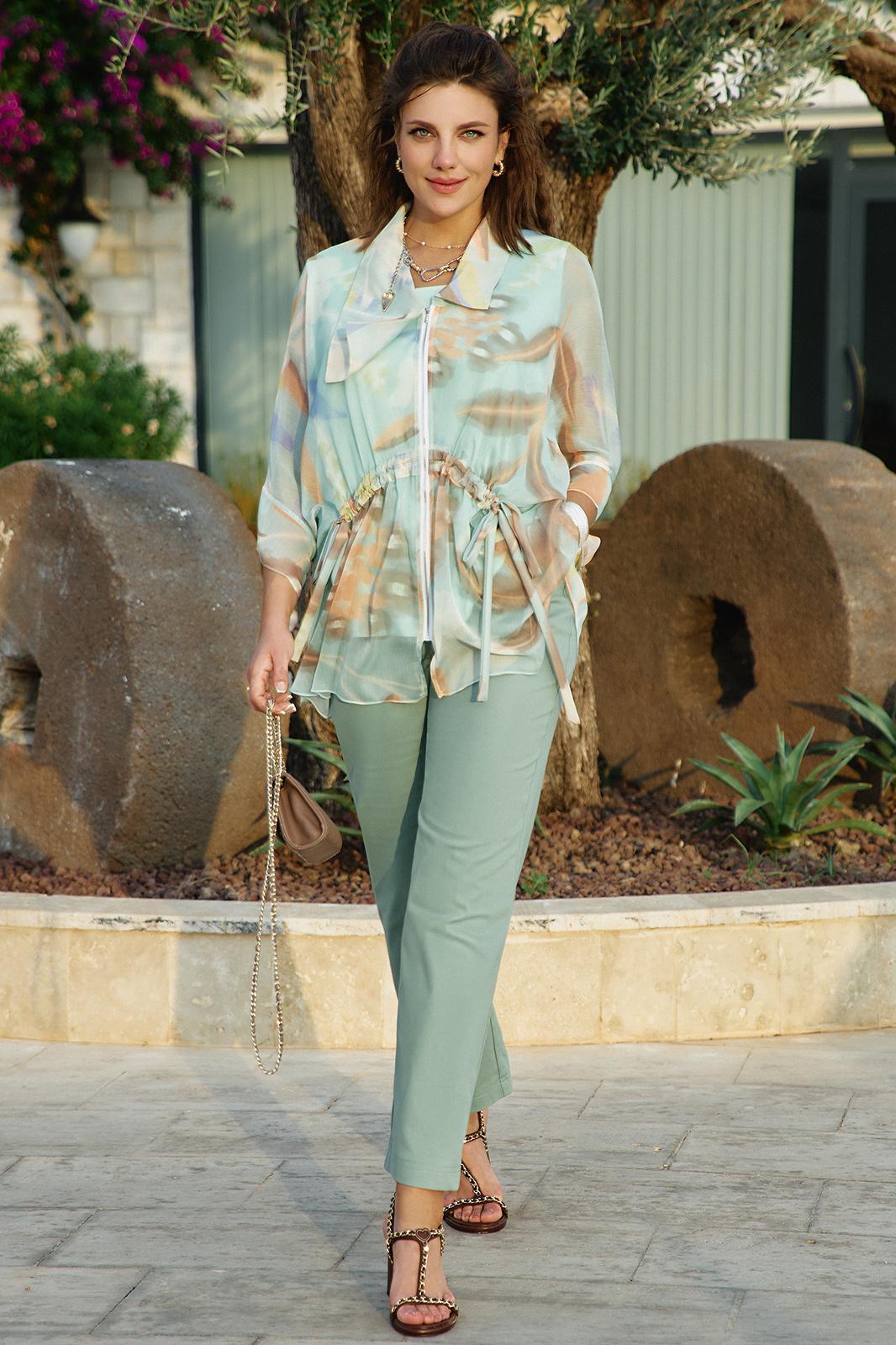 Брюки - джинсы классического силуэта являются отличной базой в гардеробе каждой модницы. Светлый деним придаёт образу лёгкости и уверенности. Классический крой делает силуэт сбалансированным и вневременным. Брюки прямого силуэта, по переду застежка на тесьму молнию в гульфике и пуговицу в поясе. По переду брюк наклонные карманы. Пояс притачной со шлёвками, вставкой эластичной тесьмы резинки в «бочках» пояса и вставкой фигурной кокетки по задним деталям брюк. По задним половинкам брюк накладные карманы. Длина брюк по боковому шву от шва притачивания пояса 98 см.