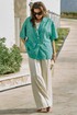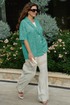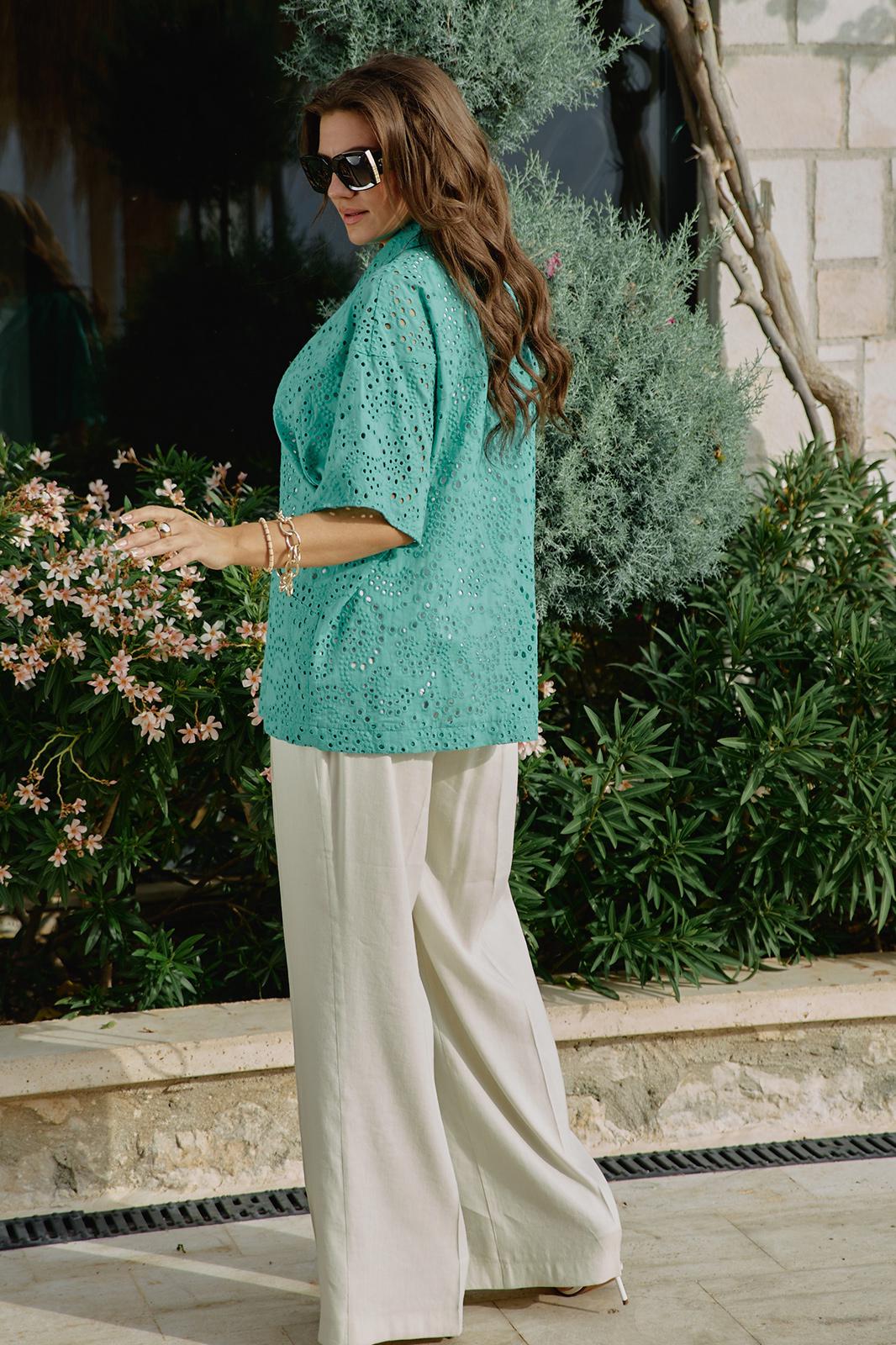 Брюки прямого силуэта по переду с стрелками, застроченными декоративной строчкой нитками в цвет. Пояс отрезной на резинке по всей длине. По переду выполнены наклонные карманы классической формы от пояса к боковому шву. По низу отделочная строчка нитками в цвет ткани. Базовые брюки идеально впишутся в ваш гардероб. Они идеально сидят на фигуре, модель комфортна натуральными материалами, она идеальна для летних прогулок. Брюки прекрасно сидят на талии, свободны по бедрам и широкие внизу, что визуально вытягивает фигуру и придает вам уверенности в каждом движении. Их удобно стилизовать с другими предметами вашего гардероба от футболок в спортивным стиле и блузок до классических жакетов и моделей свободного объема. Пластика натуральной ткани в сочетании льна и вискозы создает неповторимый шик в движении и придает статусность. Длина брюк 108 см.