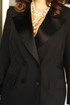 Стильный костюм с брюками – клёш создан в духе последних тенденций модной индустрии! В нем Вы будете чувствовать себя комфортно и неотразимо. Жакет «oversize» прекрасно скрывает недостатки фигуры, а брюки визуально удлиняют ноги. Костюм отлично подойдёт для торжественных мероприятий. Жакет прямого силуэта, удлинённый, с двубортной застежкой на петли и пуговицы, воротник отложной с широкими лацканами пиджачного типа из отделочной ткани. По переду жакета талиевые вытачки и отделочные клапана. Спинка с плечевыми вытачками, средним швом, заканчивающимся отлетной шлицей. Рукав втачной, двухшовный с отделкой в виде пуговиц по низу рукава. Жакет на подкладке. Брюки удлинённые, клёш от колена. Застежка на тесьму молнию в гульфике и пуговицу по центру переда. Пояс притачной с эластичной тесьмой в задней части брюк, которая обеспечивает максимально комфортную посадку на любой тип фигуры. Длина жакета вдоль середины спинки от шва втачивания воротника 71,5 см (р.50-54), 73 см (р.56-60). Длина рукава 61 см. Длина брюк по боковому шву 108 см.