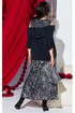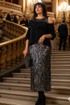 Этот юбочный комплект — для женщины, которая не боится владеть вниманием. Если Вы ищете идеальное сочетание стиля и комфорта, вот идеальный выбор. Комплект женский, состоящий из блузона и юбки. Блузон — это настоящая скульптурная форма. Он начинается с откровенной игры линий: мягко ниспадая с плеч, он обнажает изящные ключицы и линию декольте. Блузон свободной формы с ассиметричным вырезом декольте, отложным воротником с декоративными защипами. По переду и спинке блузона отрезная кокетка из отделочной ткани — пайетки. Низ в платье ассиметричный, боковой шов в блузоне переходит на перёд. Рукав втачной, фигурной формы с декоративным подрезом, длиной ¾. Юбка длины « миди», прямого силуэта немного расширяется к низу. Пояс в юбке цельнокроеный с эластичной тесьмой-резинкой. Длина миди придаёт образу неустаревающую классику и грацию. Плотное полотно, сплошь усыпанное мелкими пайетками графитового и серебристого оттенков, не просто отражает свет, а мягко излучает собственное, приглушённое свечение. Юбка на подкладке. Длина блузы по спинке 71 см (р 48-52), 73 см (р 54-58). Длина рукава левого/правого 27/39 см. Длина юбки 96 см.