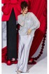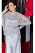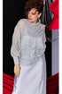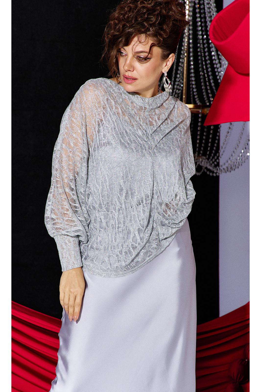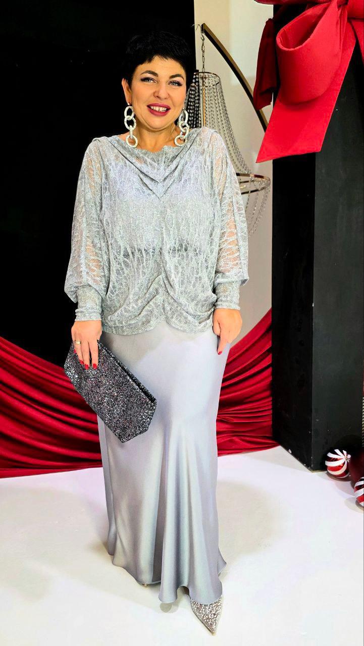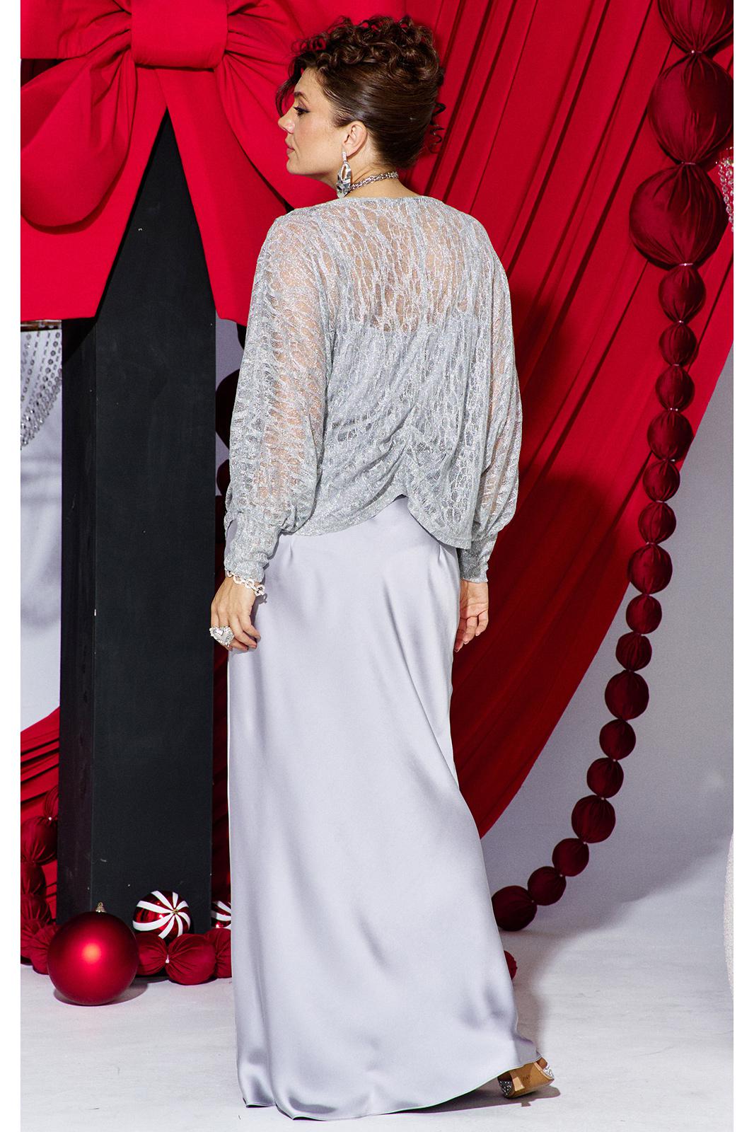 Комплект женский юбочный, состоящий из блузона, блузы и юбки. Комбинация текстур создаёт баланс между комфортом и эффектной внешностью. Тонкий трикотаж блузона держит верх мягко и деликатно, не перегружая образ, в то время как атласная юбка привносит лаконичную драму и движение. Их союз напоминает современную картину: спокойная энергия блузона встречается с холодной иронией юбки, образуя наряд, который подходит как для повседневной городской среды, так и для торжественных павильонов, когда нужен стиль без лишних слов. Блузон из тончайшего трикотажа держится на теле как вторая кожа: прозрачность ткани едва скрывает очертания силуэта, а тонкий плетёный рисунок ловко ловит свет, создавая игру полупрозрачных переходов. Его цвет— словно утренний туман, в котором каждая деталь дышит воздухом утончённости. Манжеты и блузона остаются эластичными и облегающими, подчёркивая плавные линии плеч и груди, без лишних объёмов, будто ткань шепчет о хрупкости и комфорте. По переду блузона средний шов с заложенными декоративными складками от горловины и от низа, направленные на встречу друг-другу. Рукав в блузоне цельнокроеный с притачной высокой манжетой. Блуза свободного силуэта, с нагрудными выточками по переду, и разрезами в боковых швах; на регулируемых бретелях. По спинки блузы вставка эластичной тесьмы-резинки, обеспечивающей максимально удобное прилегание. Юбка атласная в стальном металлическом оттенке добавляет образу холодной свежести и энергетического акцента. Юбка длины «миди» с притачным поясом, вставкой эластичной тесьмы-резинке в задней части пояса и застёжкой на потайную тесьму-молнию в боковом шве и пуговицу в поясе. Длина спинки блузы 53 см (р 50-54), 54 см (р 56-60), длина рукава 71. Длина топа 46 см. Длина юбки 93 см.
