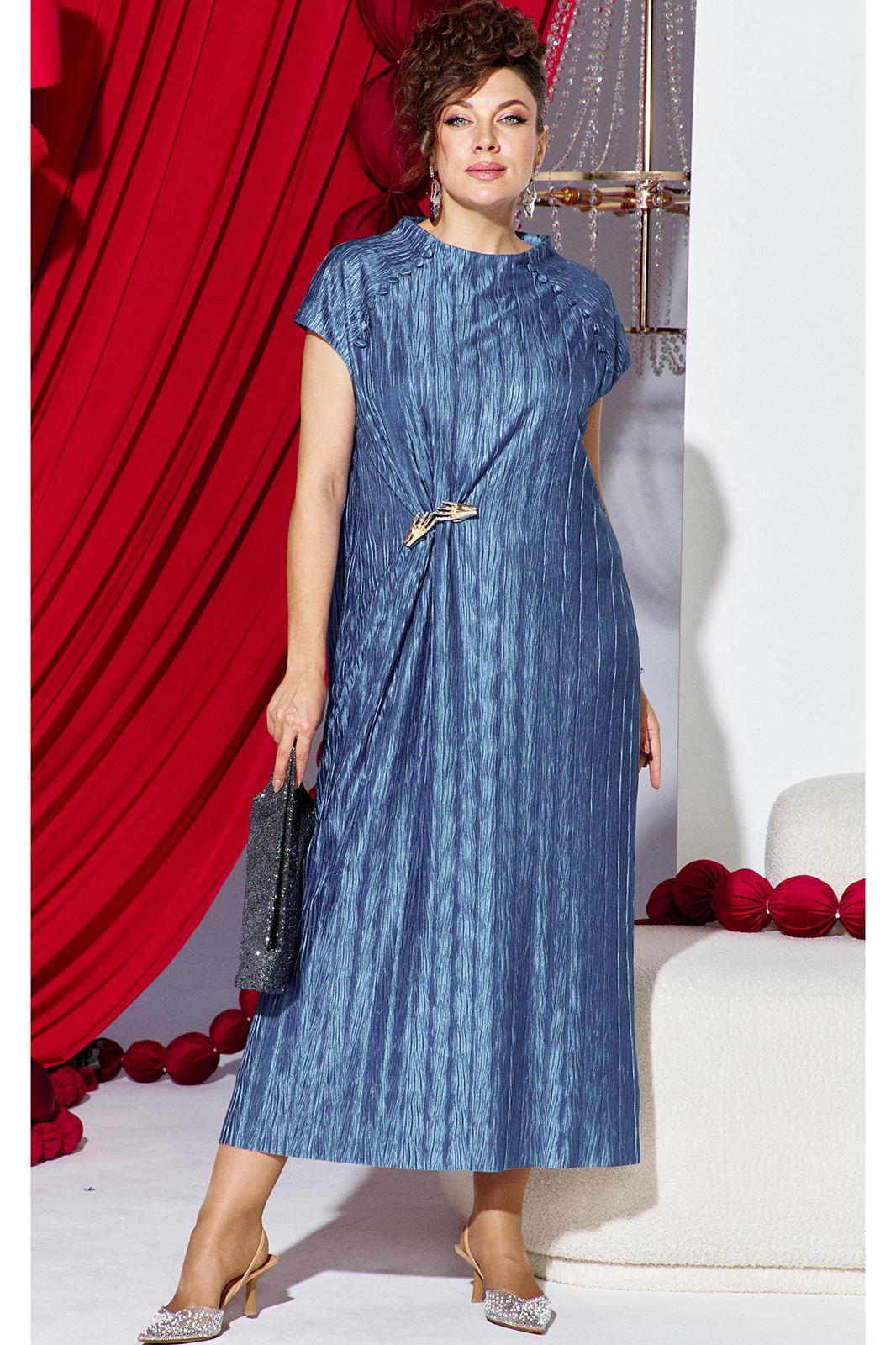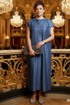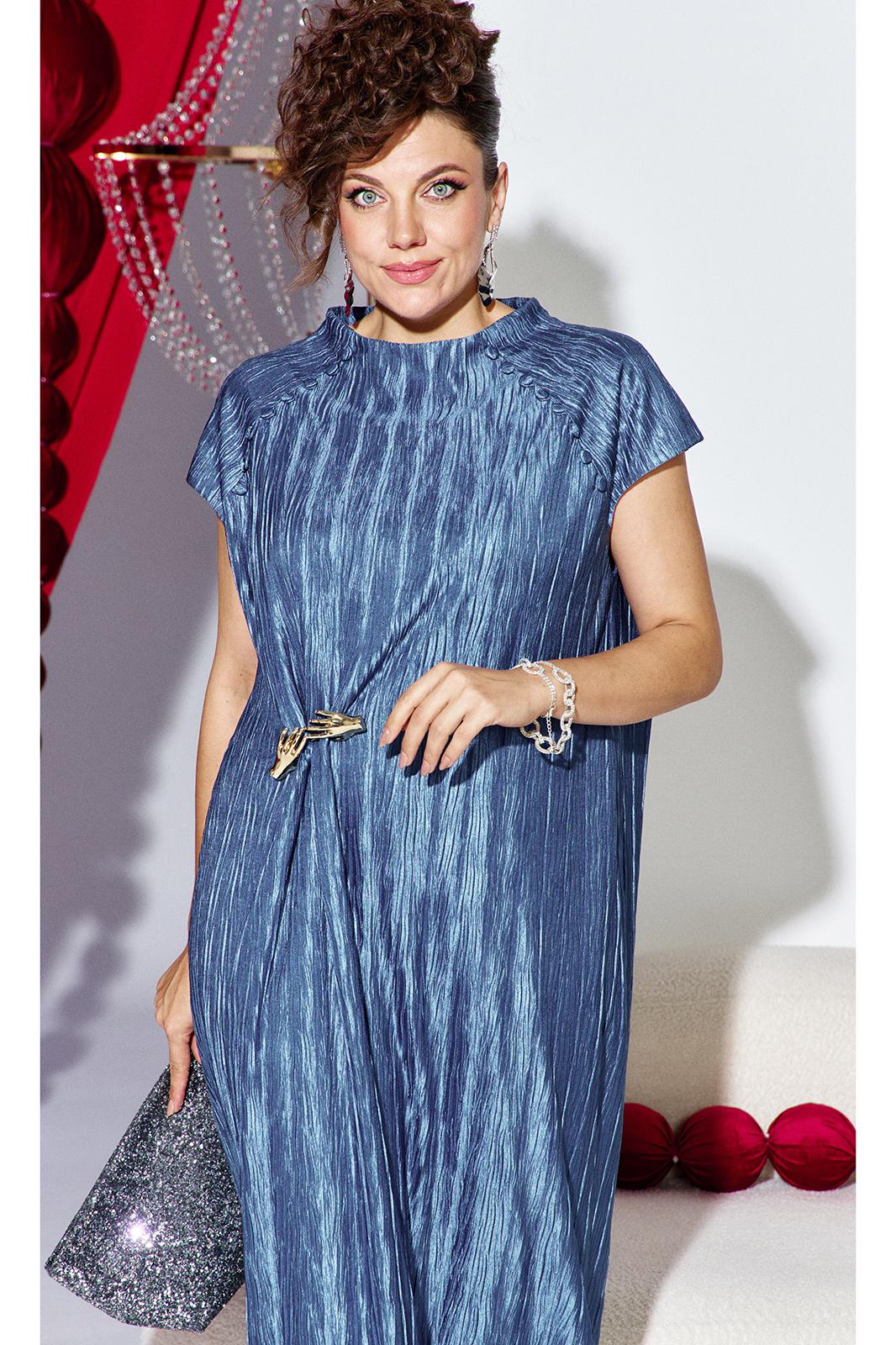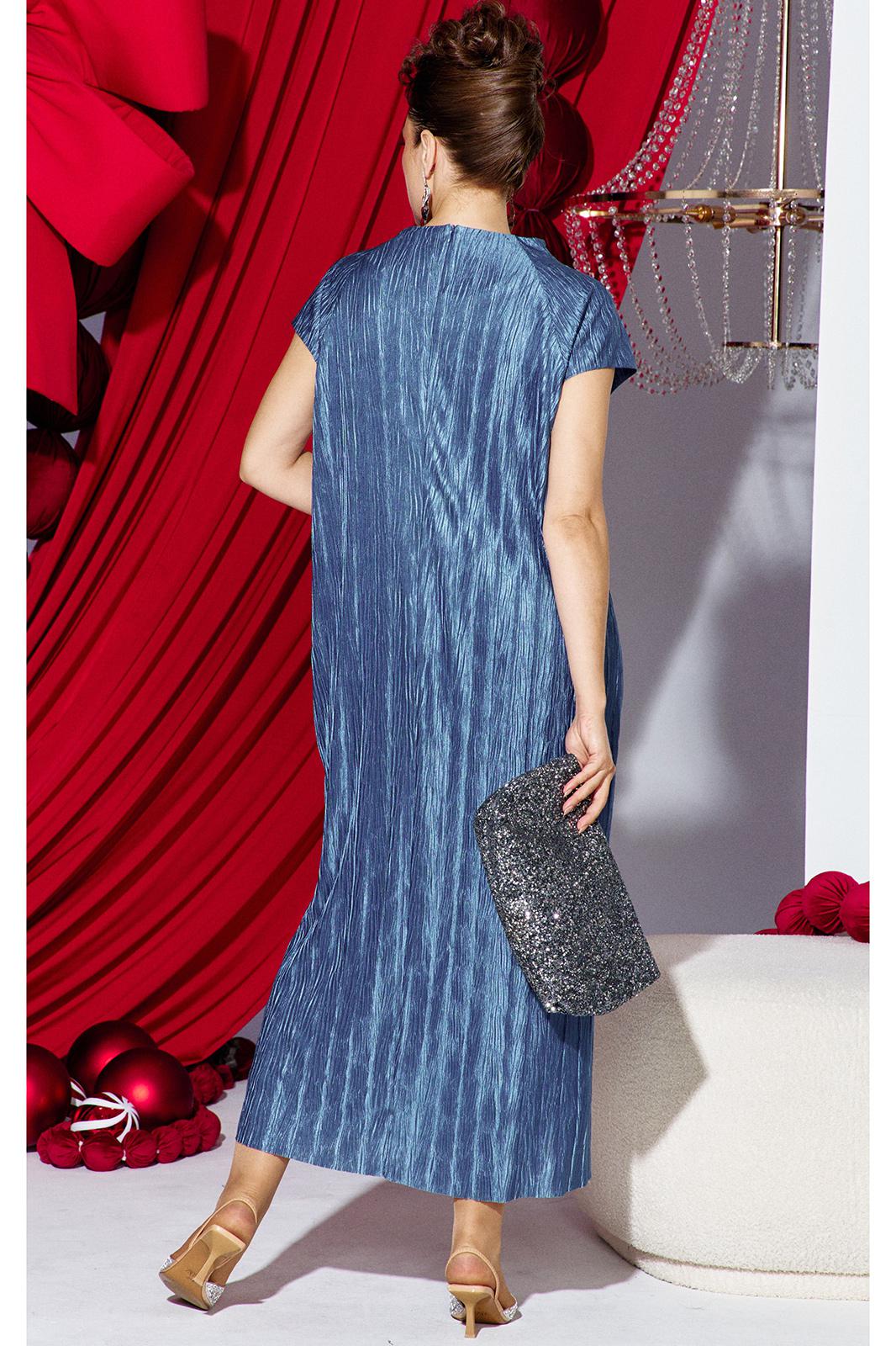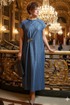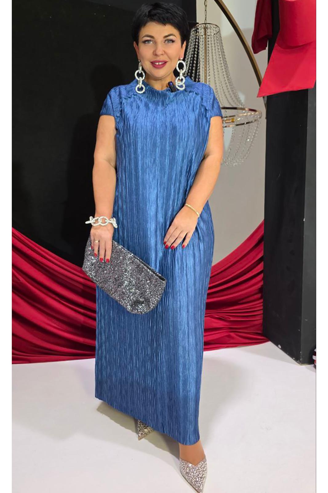 Платье прямого силуэта из фактурной ткани с крэш-эффектом, который создает в силуэте вертикальные заломы визуально вытягивающие фигуру и придает модели выразительный образ. Короткий рукав-реглан с навесными петельками и пуговицами, обтянутыми основной тканью рисует линию рельефа по переду и спинке сужая плечевой пояс. Платье на подкладке мягкое и удобное в движении. По спинке в среднем шве короткая потайная молния.