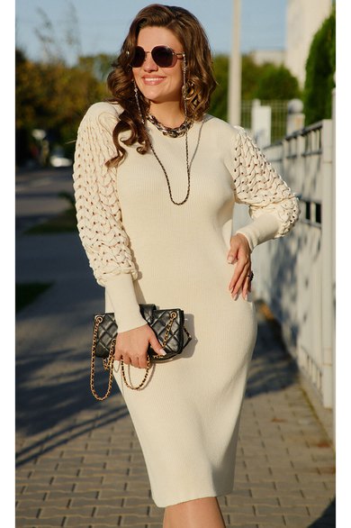 Стильное вязаное платье с длинным рукавом — это универсальный вариант, в котором будет комфортно пойти как в офис, так и на прогулку. Вязаное платье – это идеальное сочетание тепла, комфорта и красоты для любой женщины этой весной. Платье прямого силуэта, что даёт свободное облегание и обеспечат комфорт. Горловина в платье округлой формы. Рукав втачной, длинный с декоративным вязанным узором заканчивается высокой манжетой. Модель свободная, прекрасно сядет на любой тип фигуры, выпускается в трёх универсальных размерах (52, 54, 56). В зависимости от выбранного размера будет создавать различную степень облегания. Длина спинки платья 107 см - 52 р., 108 см - 54р., 110см - 56р. Длина рукава 64 см.