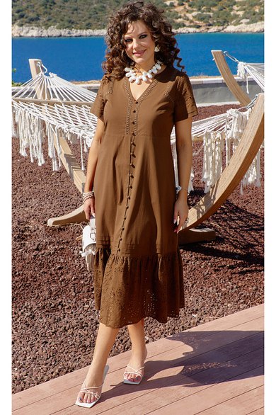 Женское платье из хлопка, дополненное элементами ришелье, в изысканном шоколадном оттенке, является настоящим произведением искусства, создавая гармоничное сочетание, которое привлекает внимание и восхищает. Дополняя это платье аксессуарами, которые гармонично подчеркнут общий образ и Вы будете выглядеть изящно, чувствовать себя увереннее и привлекательнее в любой обстановке: будь то романтический вечер, встреча с подругами или прогулка по городу. Таким образом, женское платье из хлопка в сочетании с ришелье в шоколадном оттенке становится не просто предметом гардероба, а истинным символом стиля, элегантности и безупречного вкуса.
