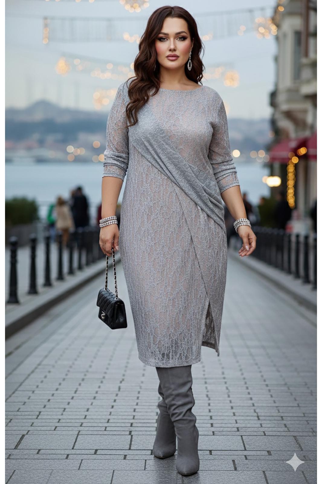 Стильное женское платье с идеальной посадкой, легко дополняется аксессуарами и обувью, создавая женственный образ. Ткань полупрозрачна - изящно и плавно обхватывает формы, повторяя контуры фигуры, создавая гармоничный силуэт. Акцент на талии достигается за счет аккуратной декоративной складки, которая визуально сужает талию и подчеркивает изгибы. Платье смотрится изысканно и достойно в любом световом окружении: вечерний образ приобретает легкую прозрачность и утонченную динамику, оставаясь при этом сдержанным и элегантным.Платье полуприлегающего силуэта с округлой формой горловины, платье отрезное по талии. По переду от подреза имитация «запаха» с неглубоким декоративными складками, которые добавляют динамичности образу. Спинка в платье без особенностей. Рукав втачной, длинный.Длина платья 118 см, длина рукава 61 см.