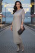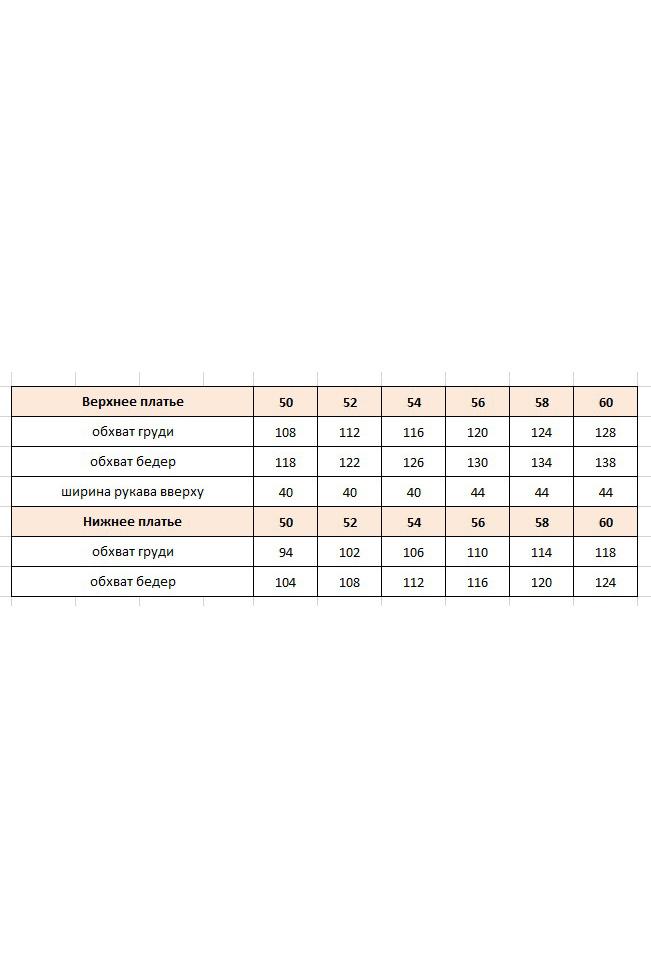 Комплект женский, двух предметный, состоящий из верхнего и нижнего платья. Комбинация текстур создаёт баланс между комфортом и эффектной внешностью. Тонкий трикотаж верхнего платья держит верх мягко и деликатно, не перегружая образ, в то время как нижнее платье обволакивает фигуру, тем самым привносит лаконичную драму и движение. Данный наряд подходит как для повседневной городской среды, так и для торжественных выходов, когда нужен стиль без лишних слов. Верхнее платье из тончайшего трикотажа держится на теле как вторая кожа: прозрачность ткани едва скрывает очертания силуэта, а тонкий плетёный рисунок ловко ловит свет, создавая игру полупрозрачных переходов. Платье полуприлегающего силуэта, длины миди, с горловиной округлой формы. Линия плеча в платье спущенная. Рукав втачной, длинный. Спинка без особенностей. Нижнее платье прилегающего силуэта, на бретелях, с фигурным вырезом горловины формы «карэ», на обтачке. Спинка без особенностей. Длина верхнего платья 124 см, длина рукава 54 см (р 50-54), 52 см (р 56-60). Длина нижнего платья 112 см, длина плеча 6 см.