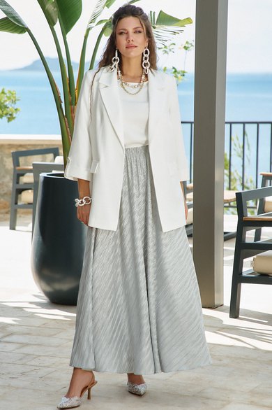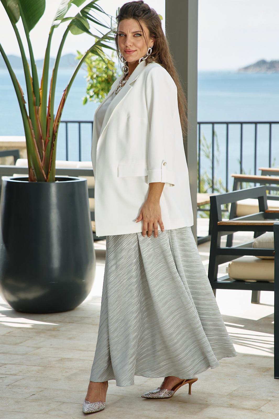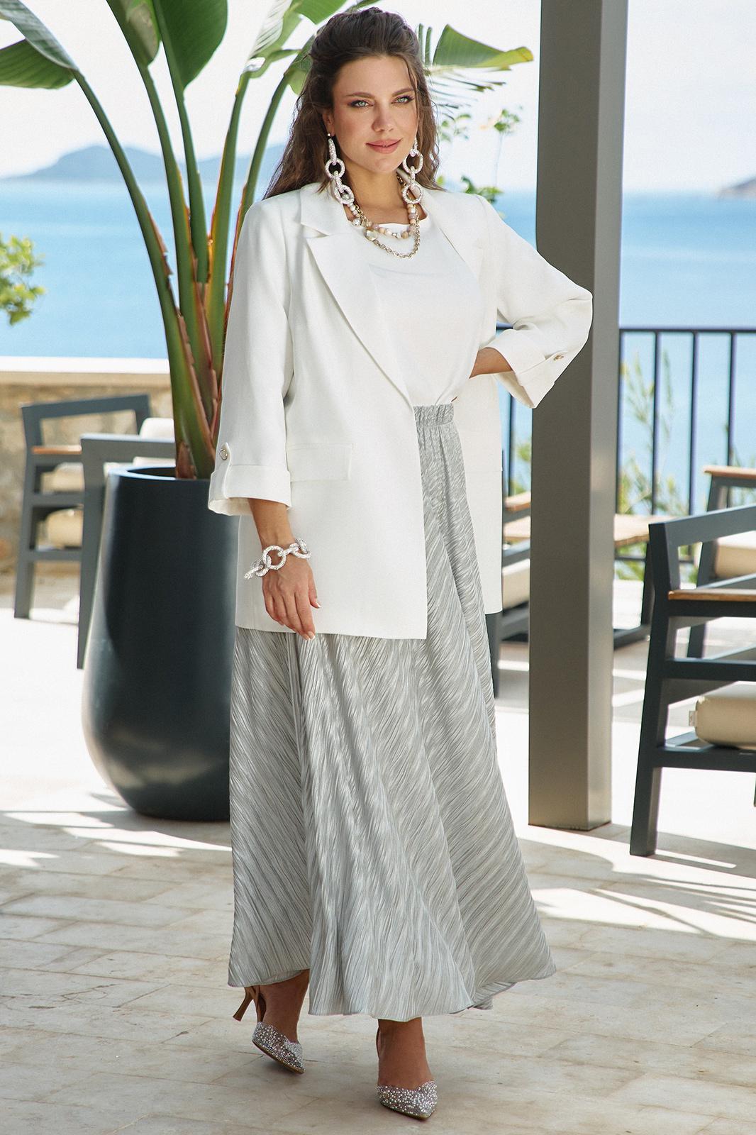 Крой юбки уравновешивает визуально бёдра и создаёт плавный силуэт. Длина юбки 96 см.