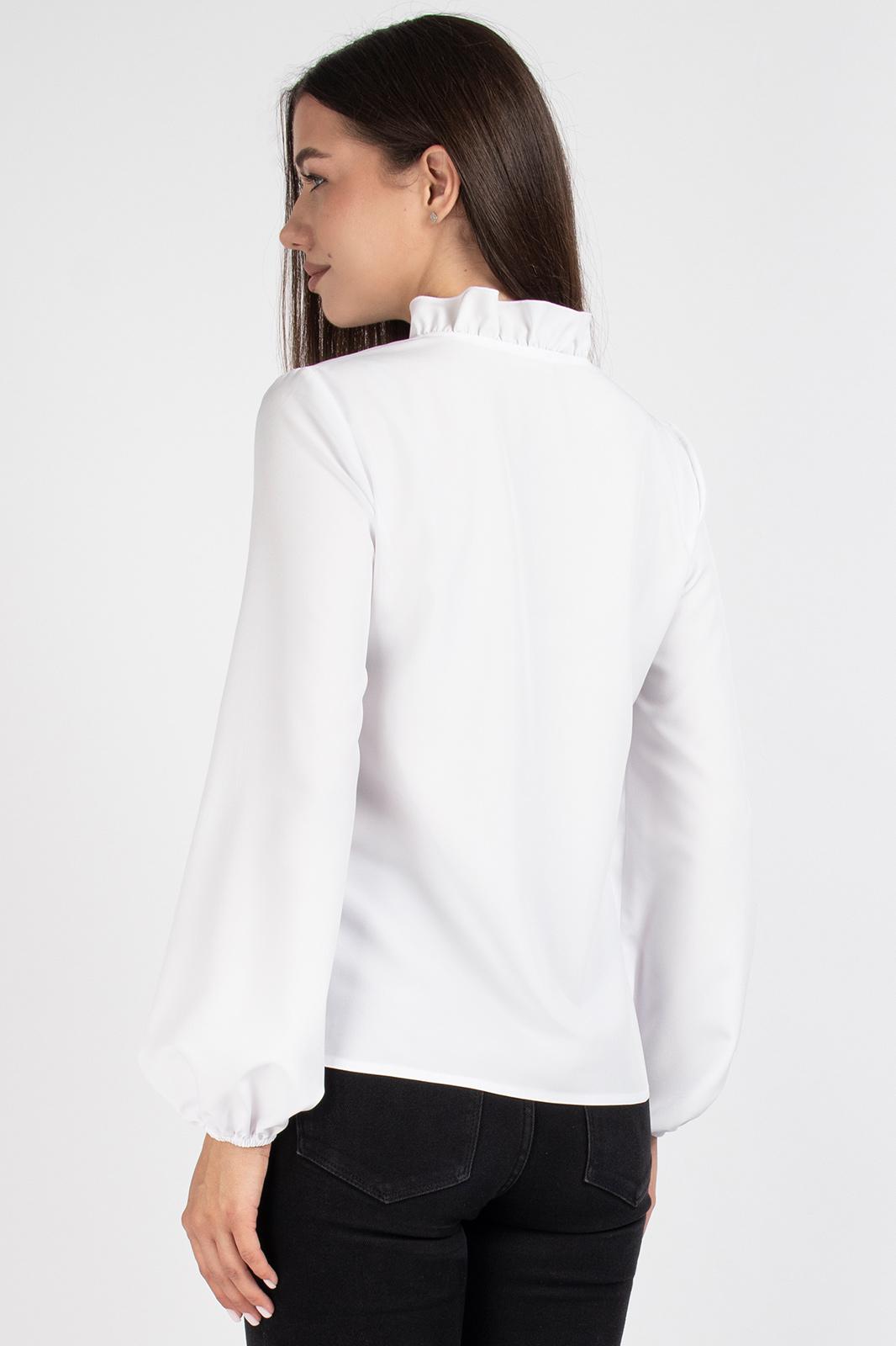 Блуза женская прямого силуэта. Перед из двух частей с нагрудными выточками. Спинка цельная. По центру переда и горловине вставлена рюша.