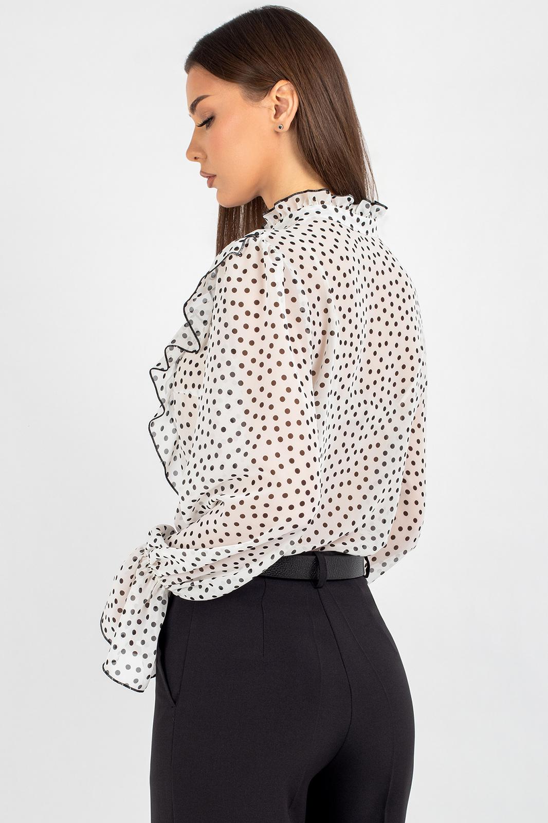 Такая блузка легко комбинируется с разными элементами гардероба: её можно носить с классическими брюками, юбкой‑карандашом или джинсами с высокой талией. Лёгкий шифон приятен к телу, хорошо пропускает воздух и не вызывает дискомфорта в течение дня — идеальный выбор для тёплого сезона. Создавайте неповторимые образы, подчёркивающие Вашу индивидуальность и чувство стиля.