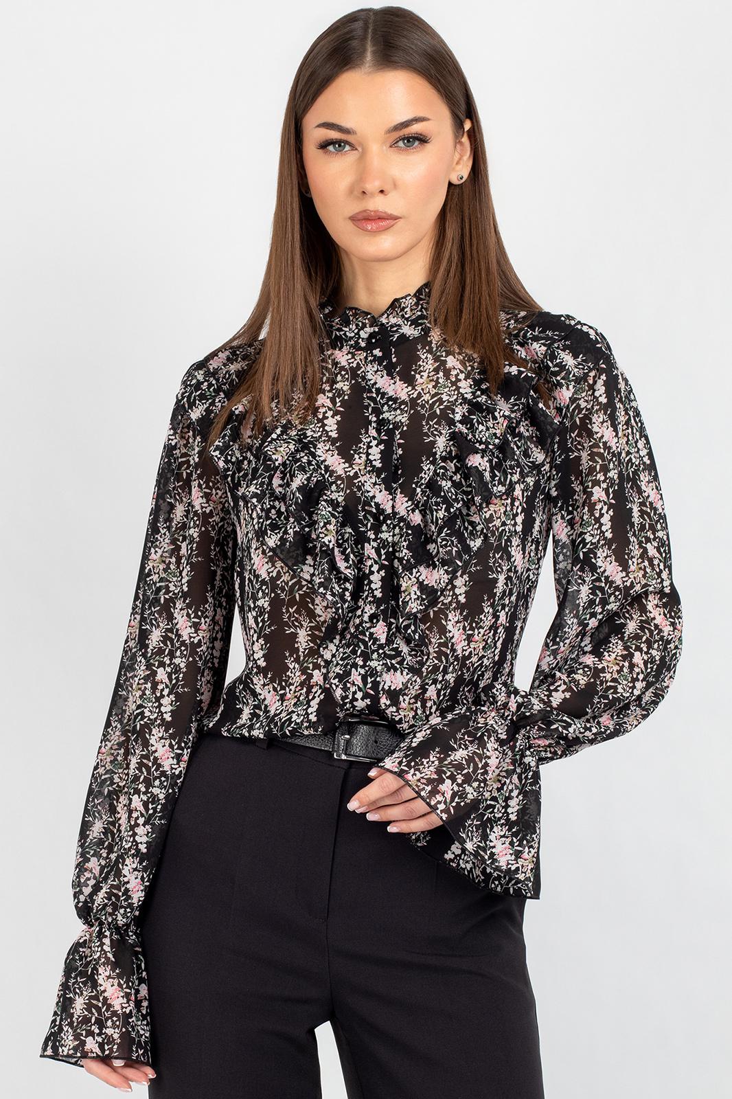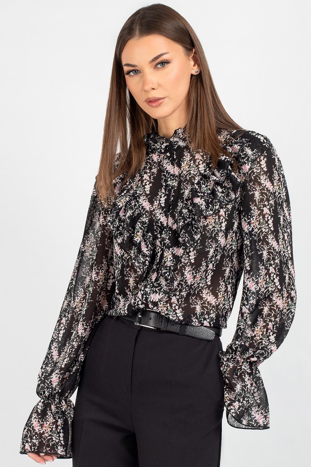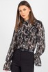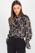 Блузка из лёгкого шифона — идеальное решение для создания как повседневных, так и деловых образов. В современном мире женской моды блузки с принтом остаются неизменно актуальными: они помогают выделиться из толпы, подчеркнуть индивидуальность и добавить яркости даже самому сдержанному гардеробу. Полуприлегающий силуэт этой модели выгодно подчёркивает фигуру, не сковывая движений, — а значит, она подойдёт для самых разных ситуаций: от офисной встречи до вечернего выхода.