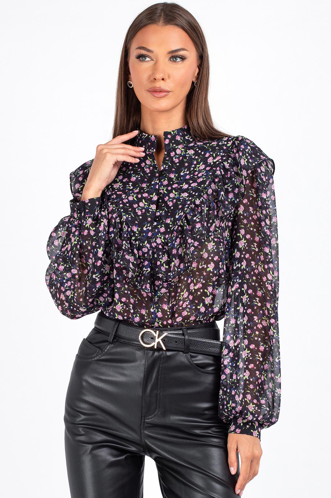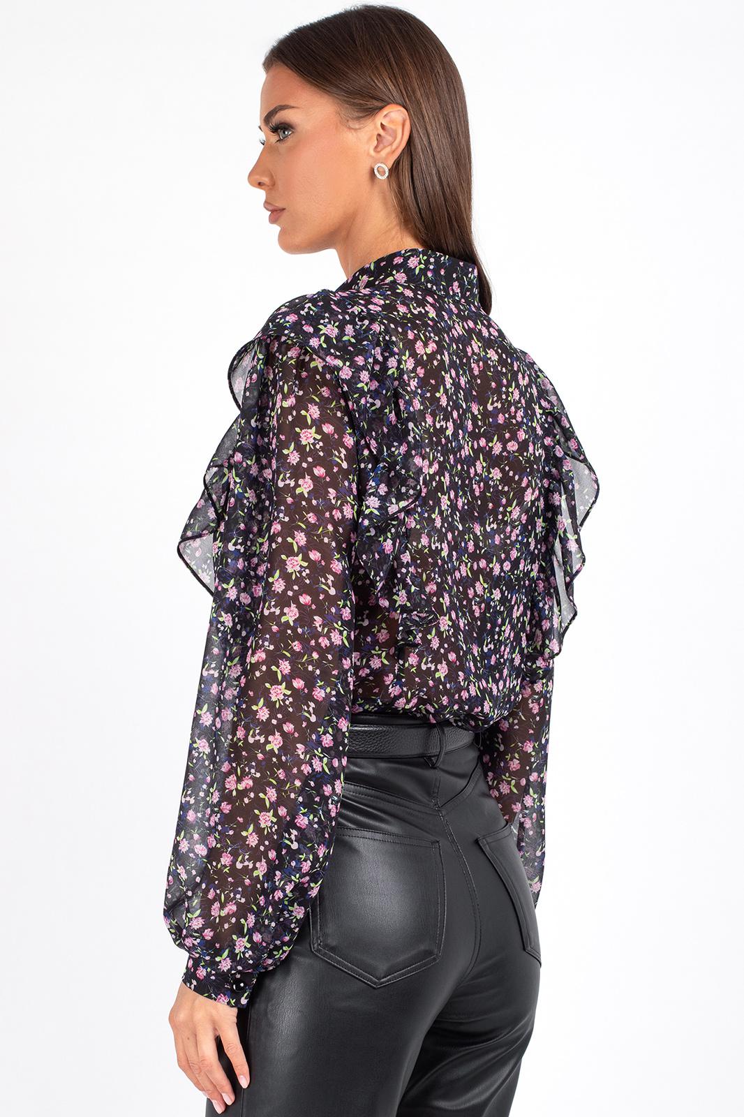 Женская блузка с цветочным принтом и рюшами