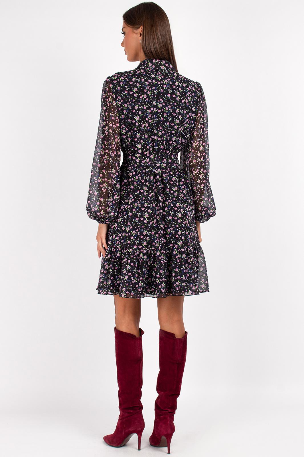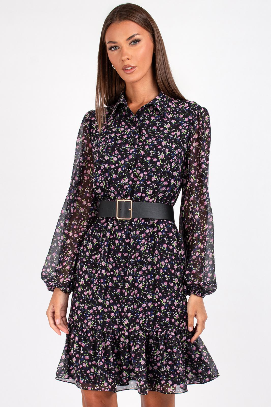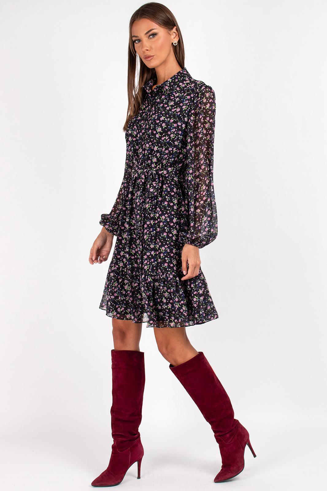 Сочетайте платье с замшевыми сапогами, добавьте кожаную куртку или ремень для более дерзкого образа. Аксессуары подчеркнут цветочный принт и создадут завершённый лук.