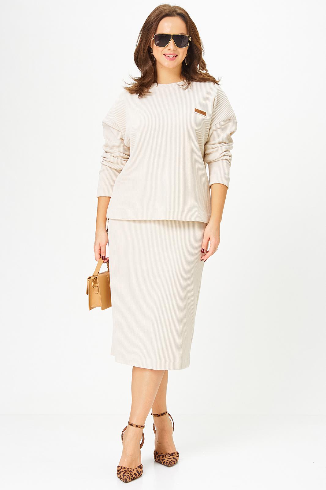 - В повседневном стиле. Практичные и демократичные модели для любых случаев: от прогулки с друзьями до похода по магазинам. Предстоит насыщенный день? Выберите комплект со стильными брюками-дудочками и модным удлиненным жакетом. Отправляетесь к морю? Ваш вариант – костюм с юбкой макси и блузой в романтичном морском стиле.