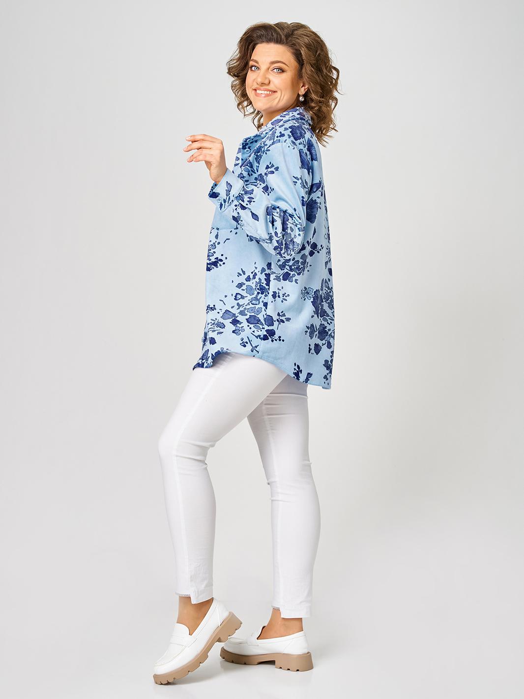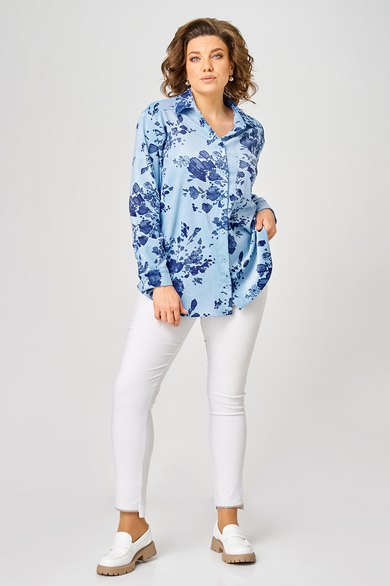 Стильная женская блузка рубашечного типа. Силуэт свободный, удлиненный. Низ фигурный. Рукав спущенный, длинный. Застежка на пуговицах. На полочке кокетка, накладной карман. По спинке кокетка со встречной складкой. Блузка хорошо сочетается с юбкой, брюками или джинсами. Модель блузки подходит на любой тип фигуры и на любой рост. При подборе необходимого размера, используйте таблицу обмерных данных в готовом виде. Чтобы перейти в общий каталог моделей, нажмите на иконку бренда в карточке товара. Спасибо, что выбираете Zlata!