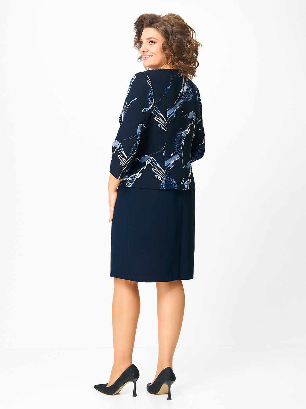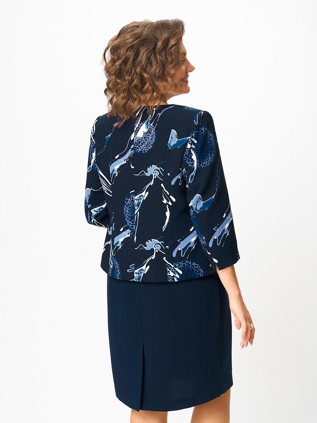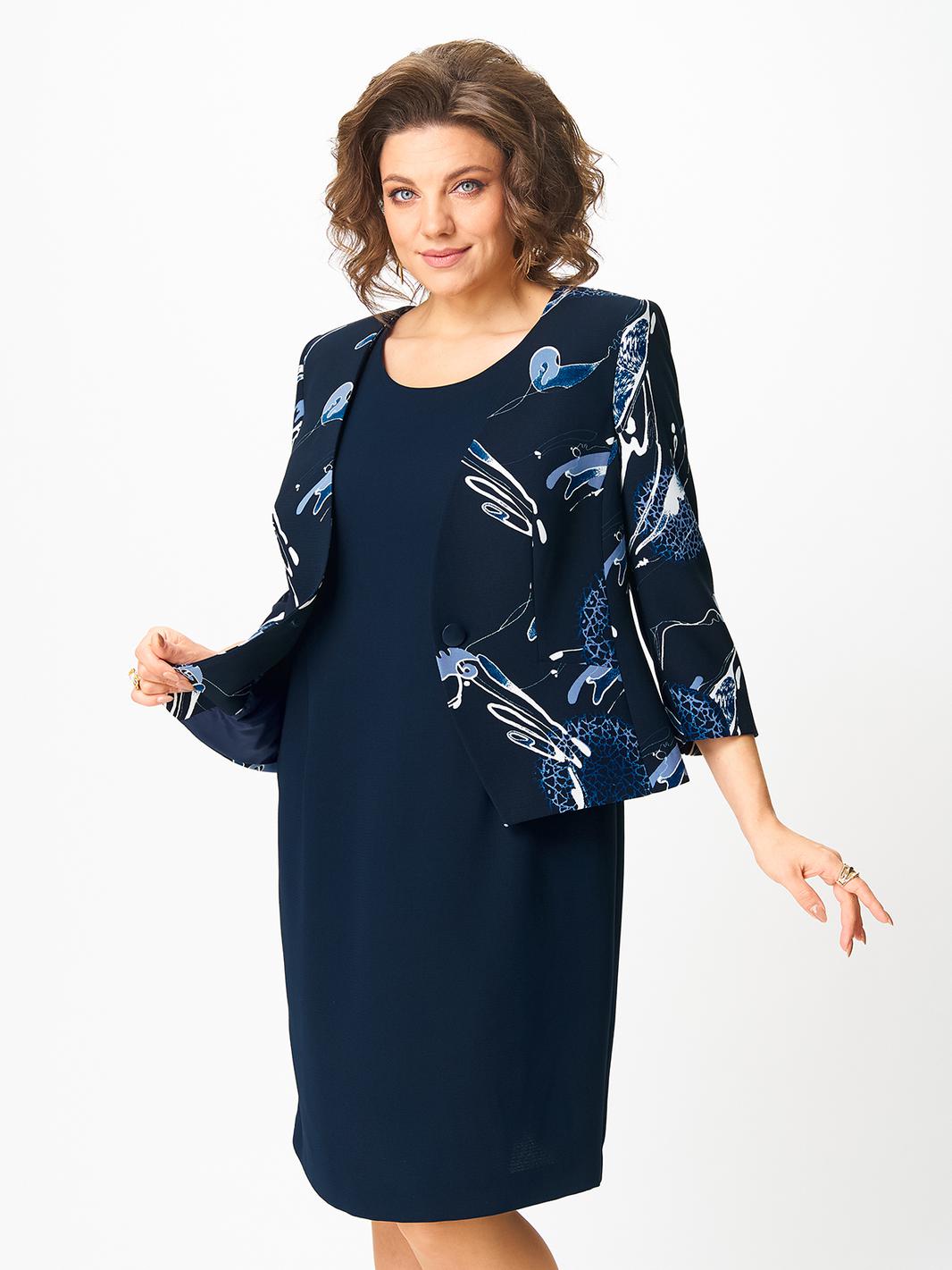 Жакет подобран в тон платья и гармонично собирает образ в единое целое, создавая особый стиль и позволяя трансформировать комплект из повседневного в праздничный.